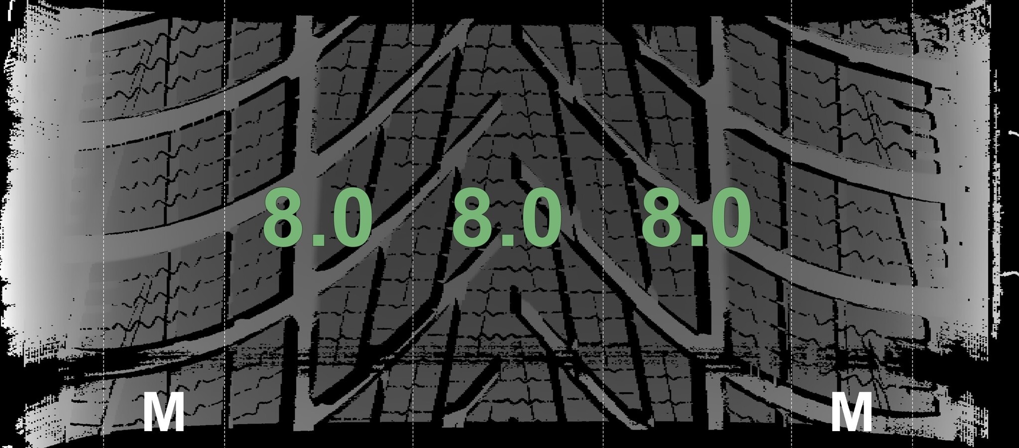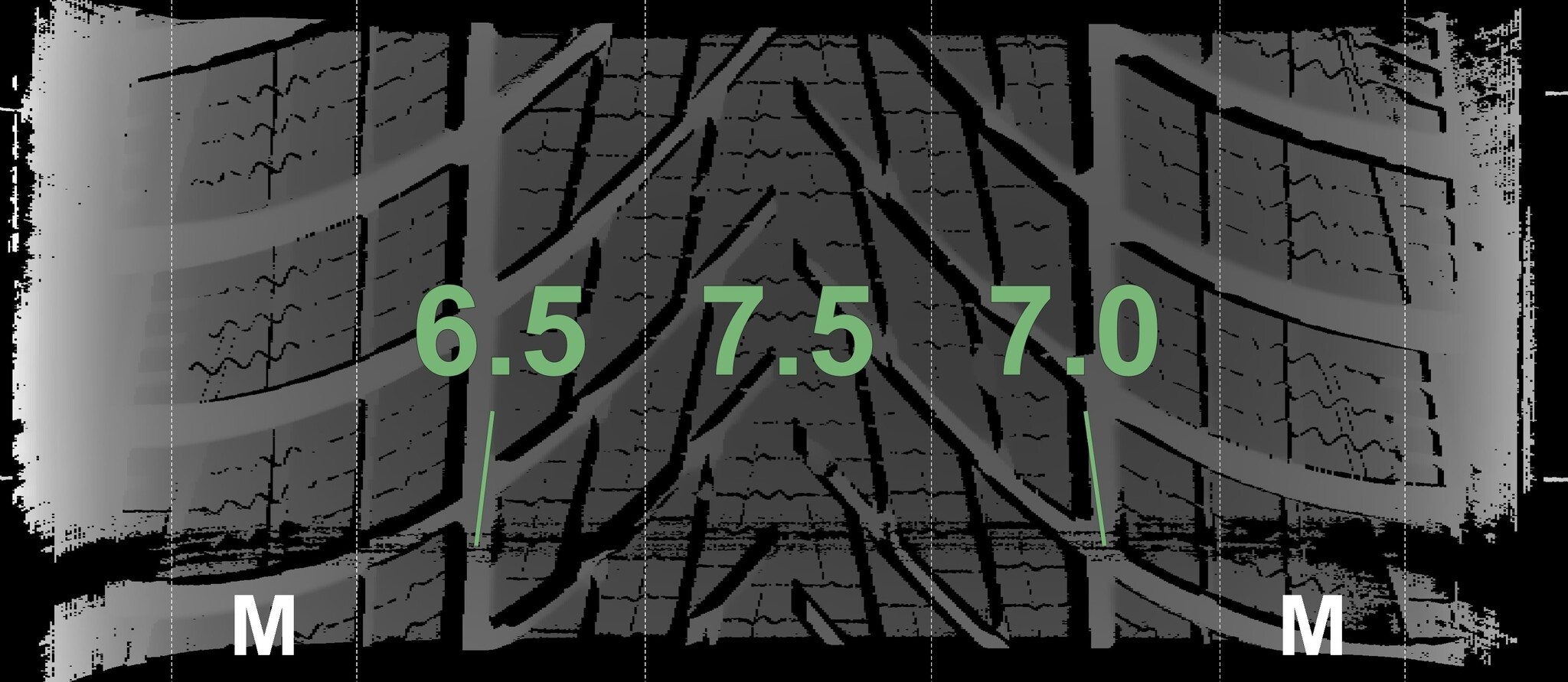 Die gemessenen Profiltiefen und Details zu den Felgen sind oben abgebildet.