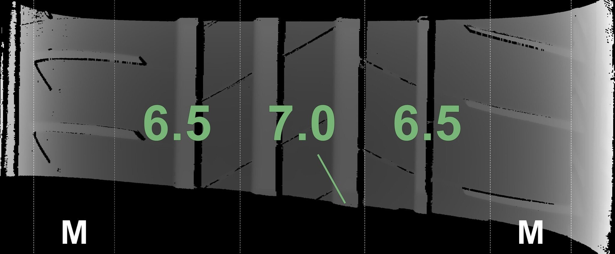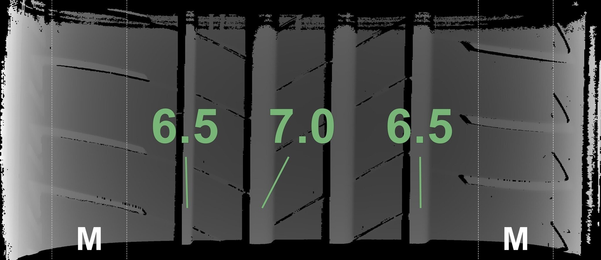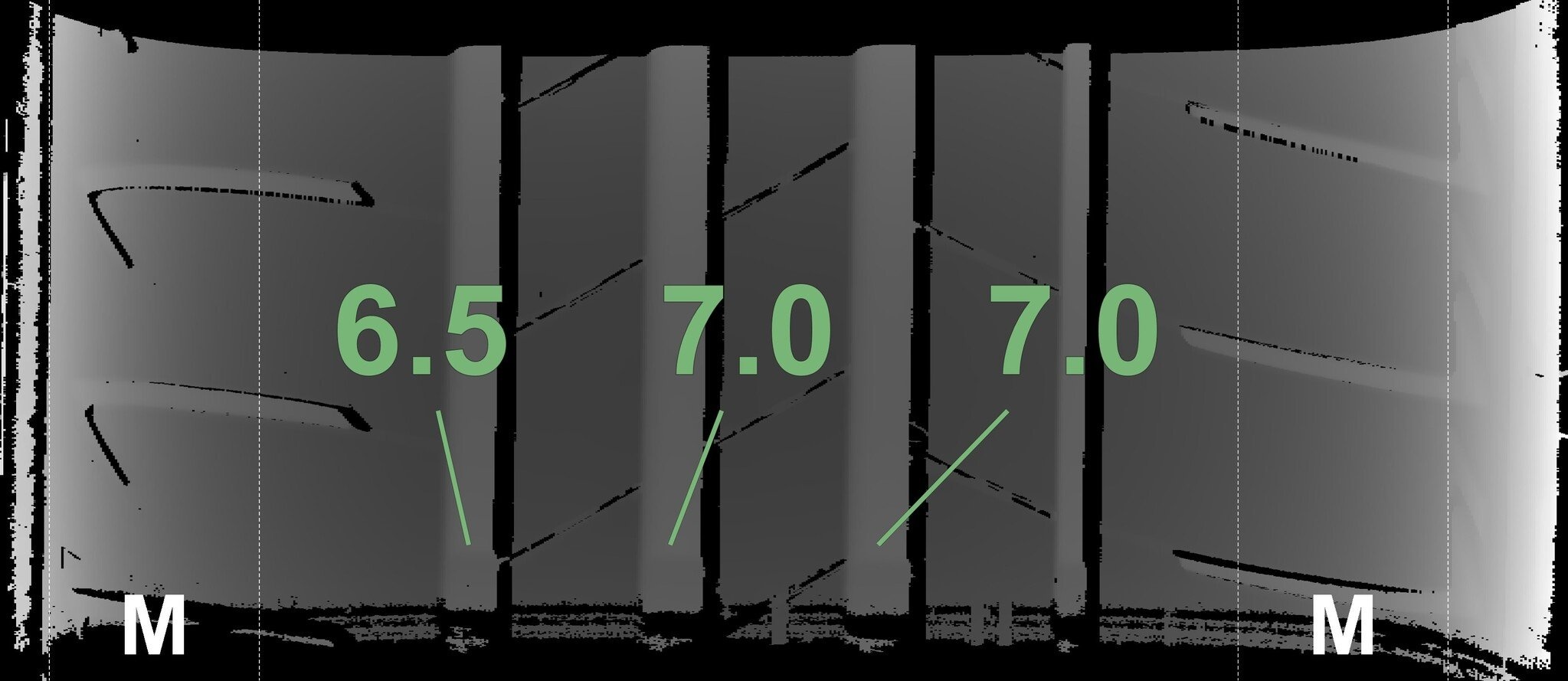 Die gemessenen Profiltiefen und die Details der Felgen sind oben angezeigt.