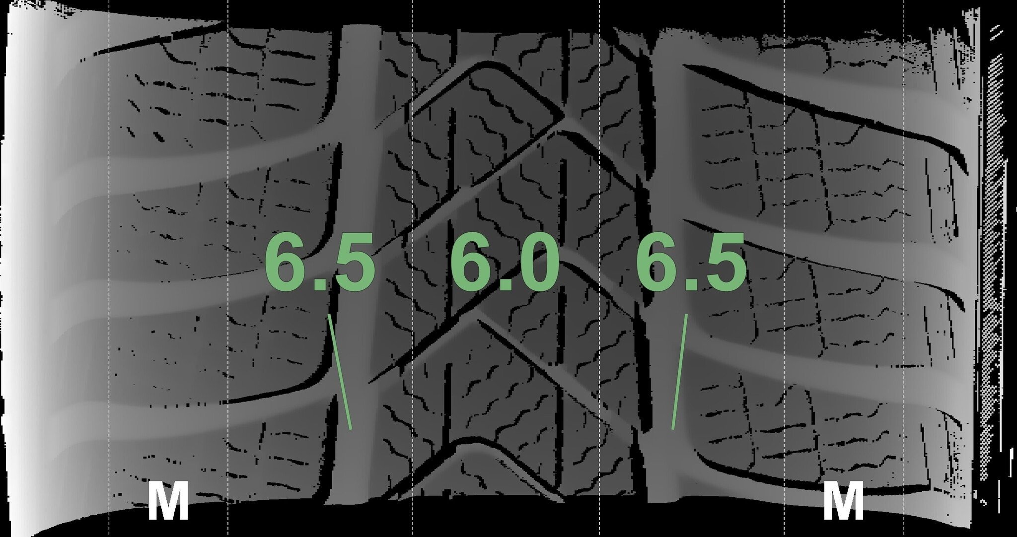Die gemessenen Profiltiefen und die Details der Felgen sind oben dargestellt.