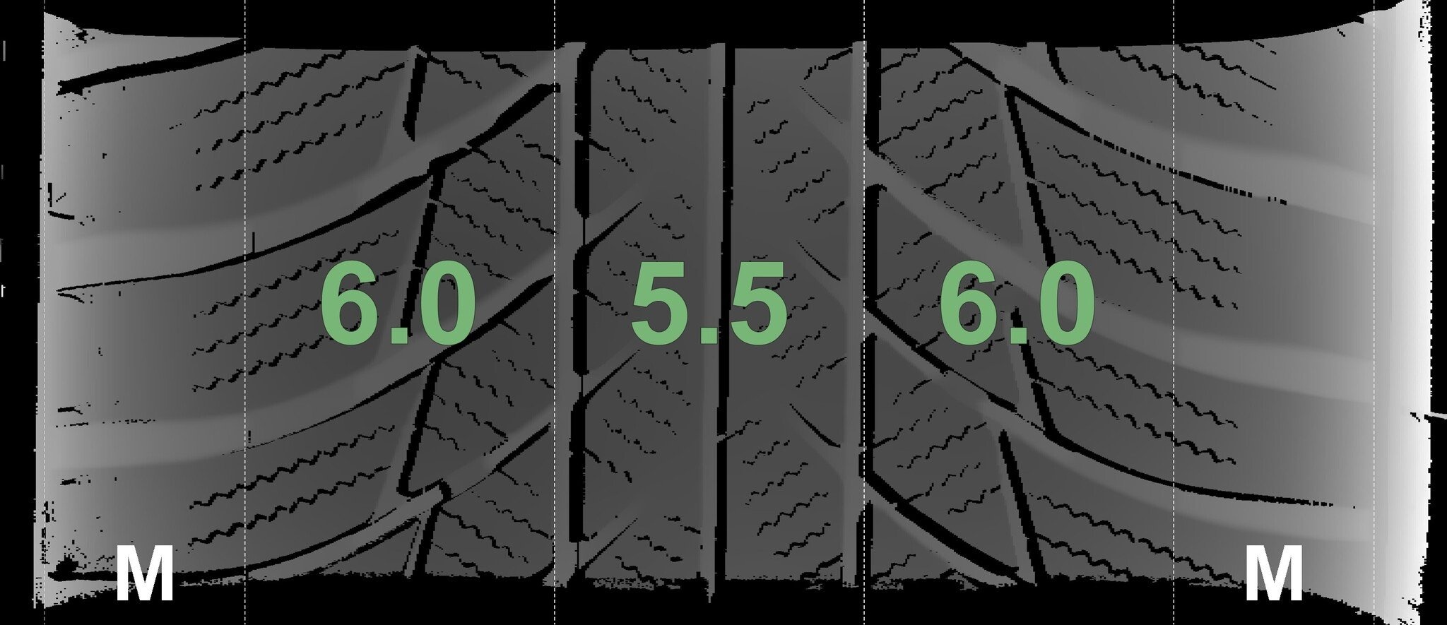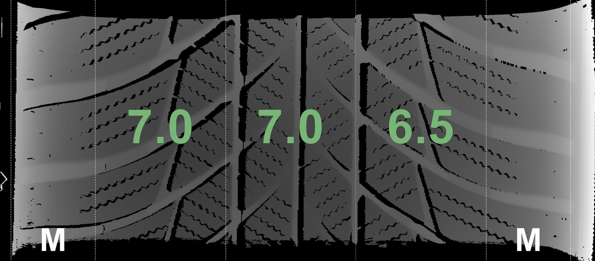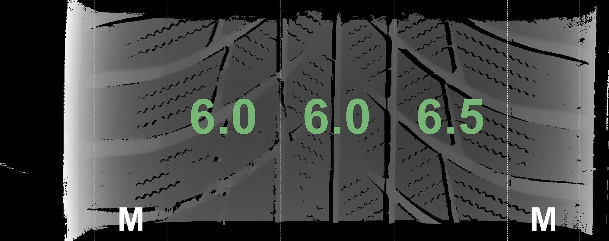 Die gemessenen Profiltiefen und die Details der Felgen sind oben aufgeführt.