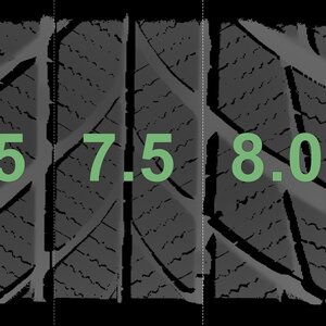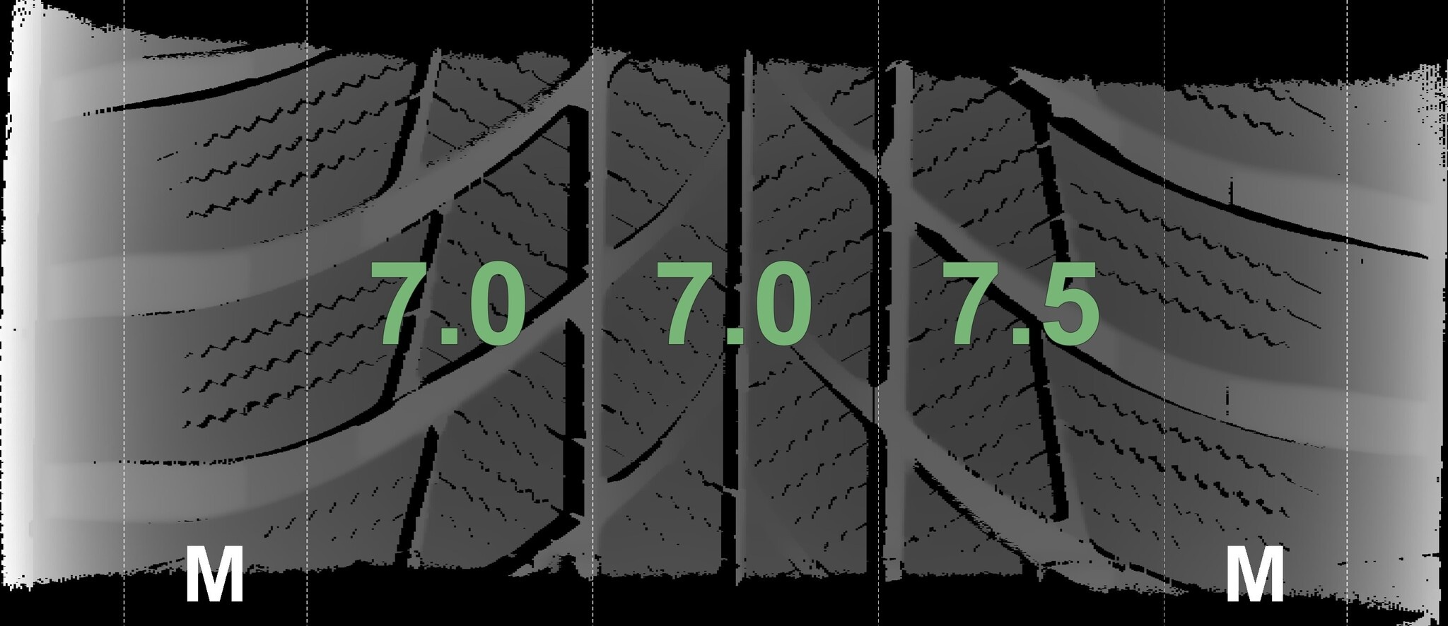 Die gemessenen Profiltiefen und die Details der Felgen sind oben dargestellt.