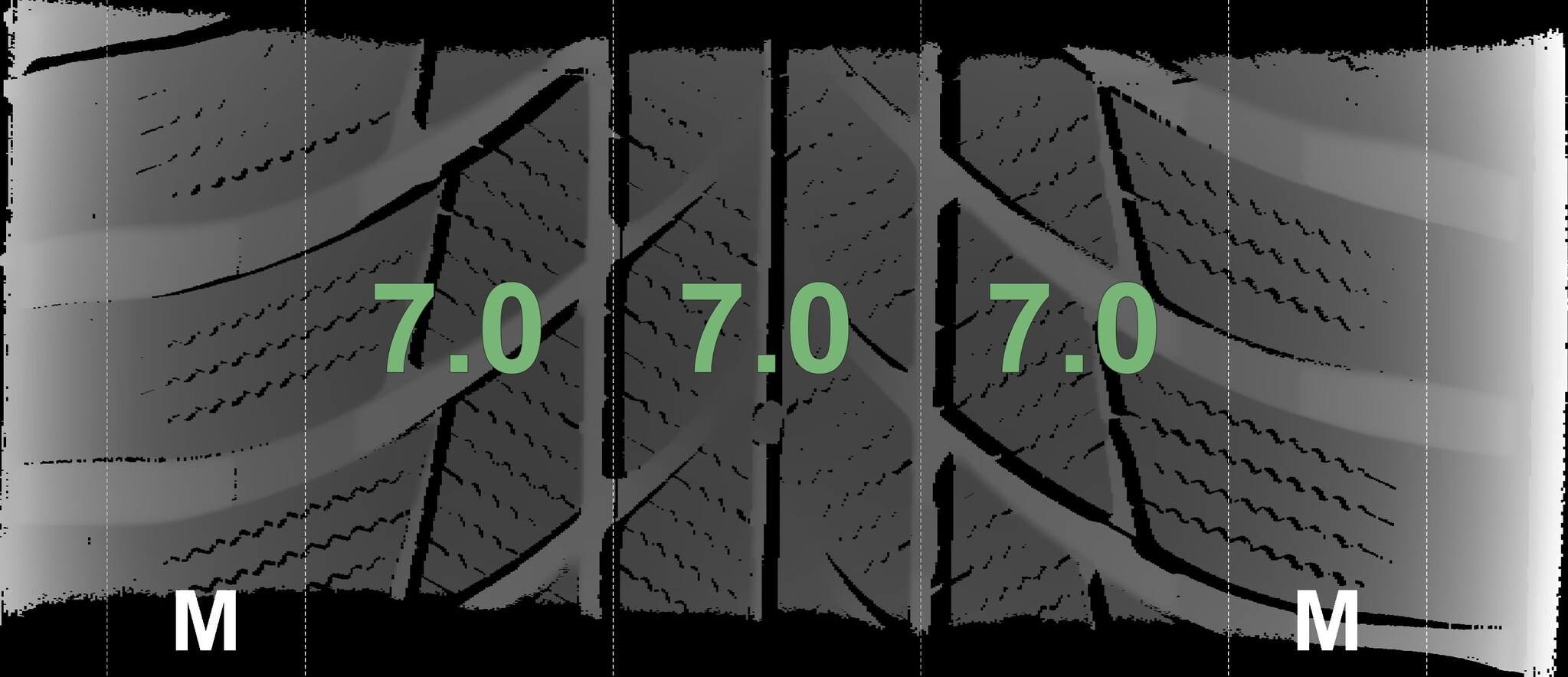 | Zustand | Profiltiefe | DOT | Vorderachse Rechts | Gebraucht | 7.0 mm | 2424 |