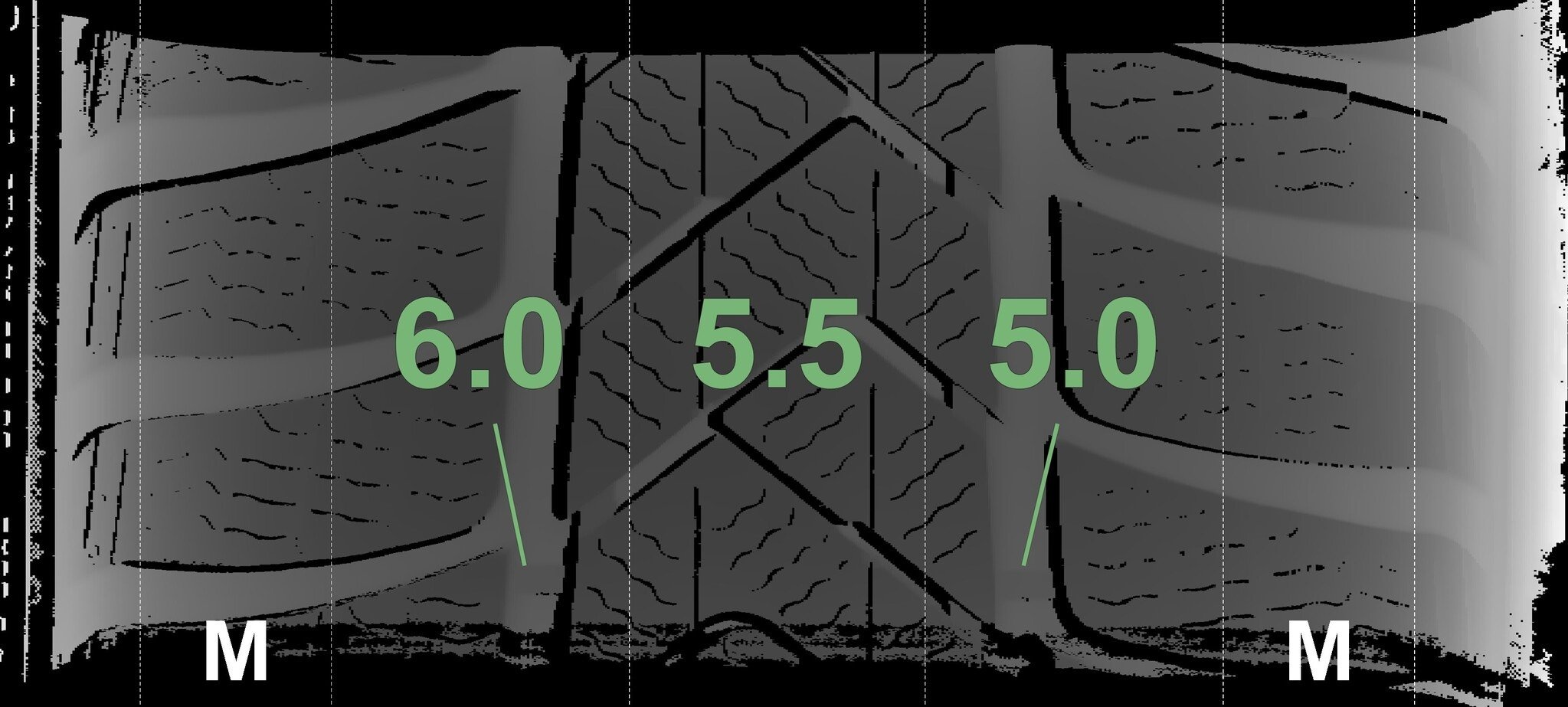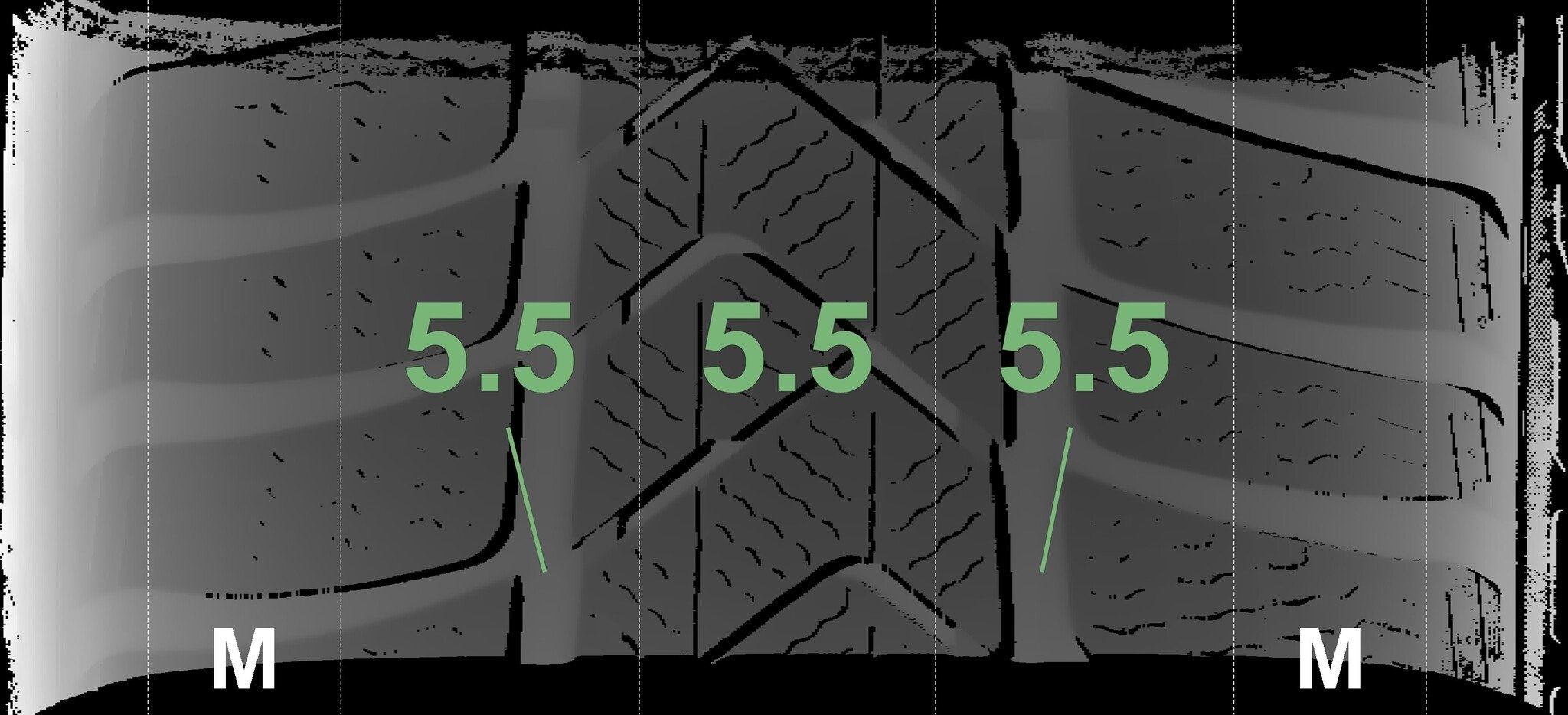 | Zustand | Profiltiefe | DOT | Hinterachse Rechts | Gebraucht | 5.5 mm | 0419 |
