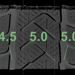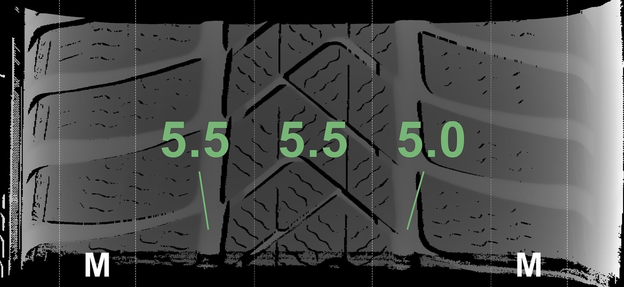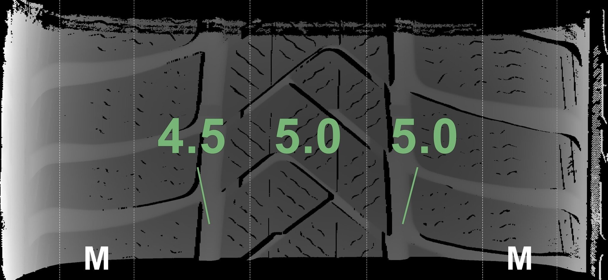 Die gemessenen Profiltiefen und die Details der Felgen sind oben dargestellt.
