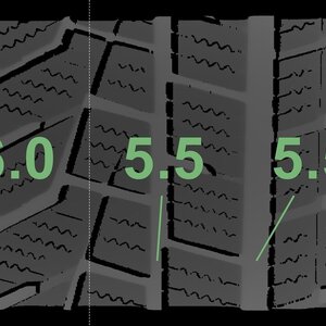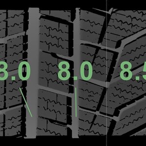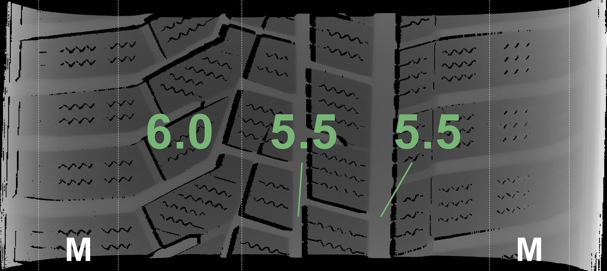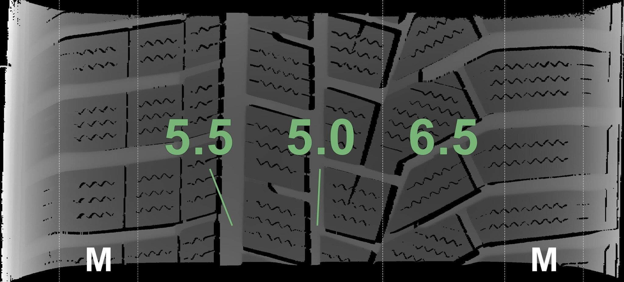 Die gemessenen Profiltiefen und die Details der Felgen sind oben dargestellt.