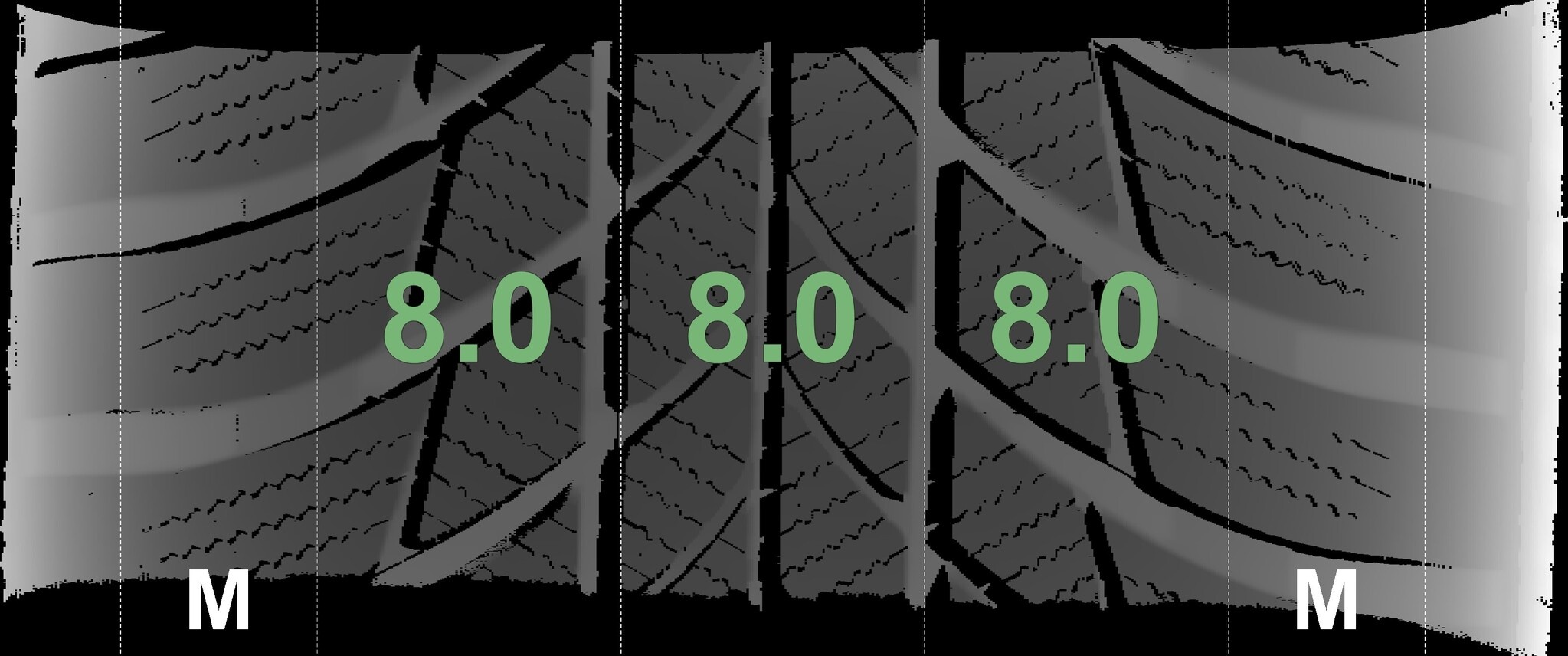 | Zustand | Profiltiefe | DOT | Hinterachse Links | Neu | 8.0 mm | 3022 |