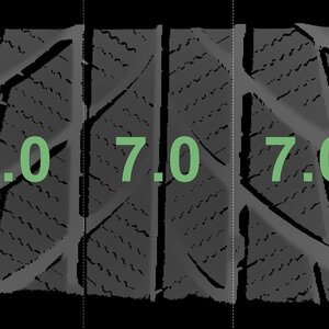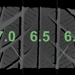 Die gemessenen Profiltiefen und die Details der Felgen sind oben dargestellt.