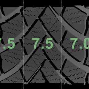 | Zustand | Profiltiefe | DOT | Vorderachse Links | Gebraucht | 7.0 mm | 3823 |