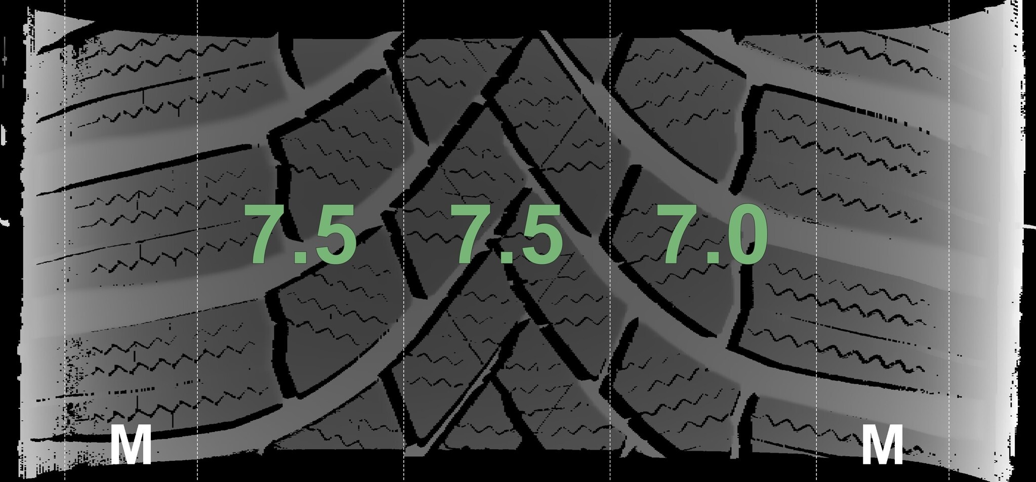 Die gemessenen Profiltiefen und die Details der Felgen sind oben aufgeführt.