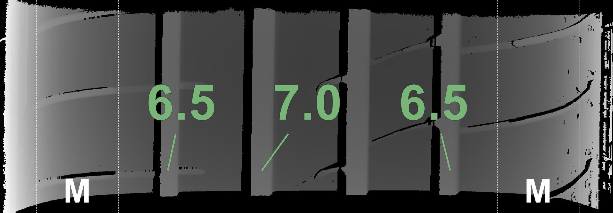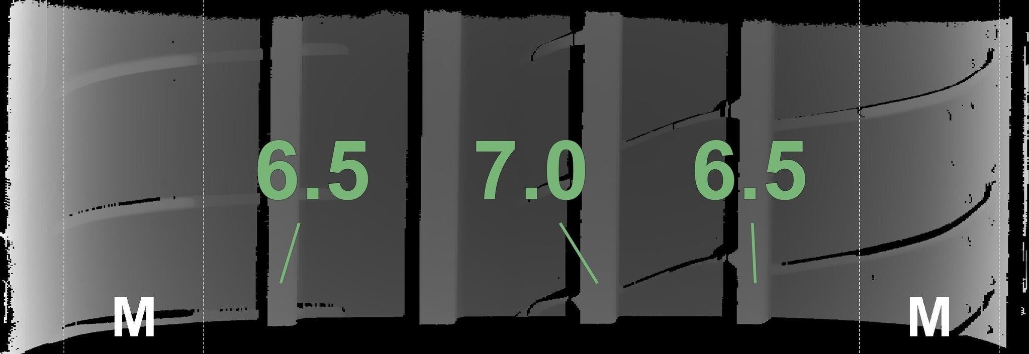 Die gemessenen Profiltiefen und die Details der Felgen sind oben aufgeführt.