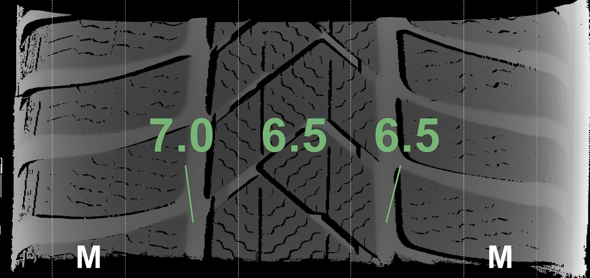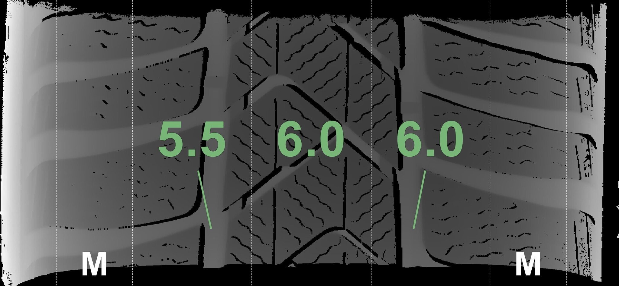 Die gemessenen Profiltiefen und die Details der Felgen sind oben angezeigt.