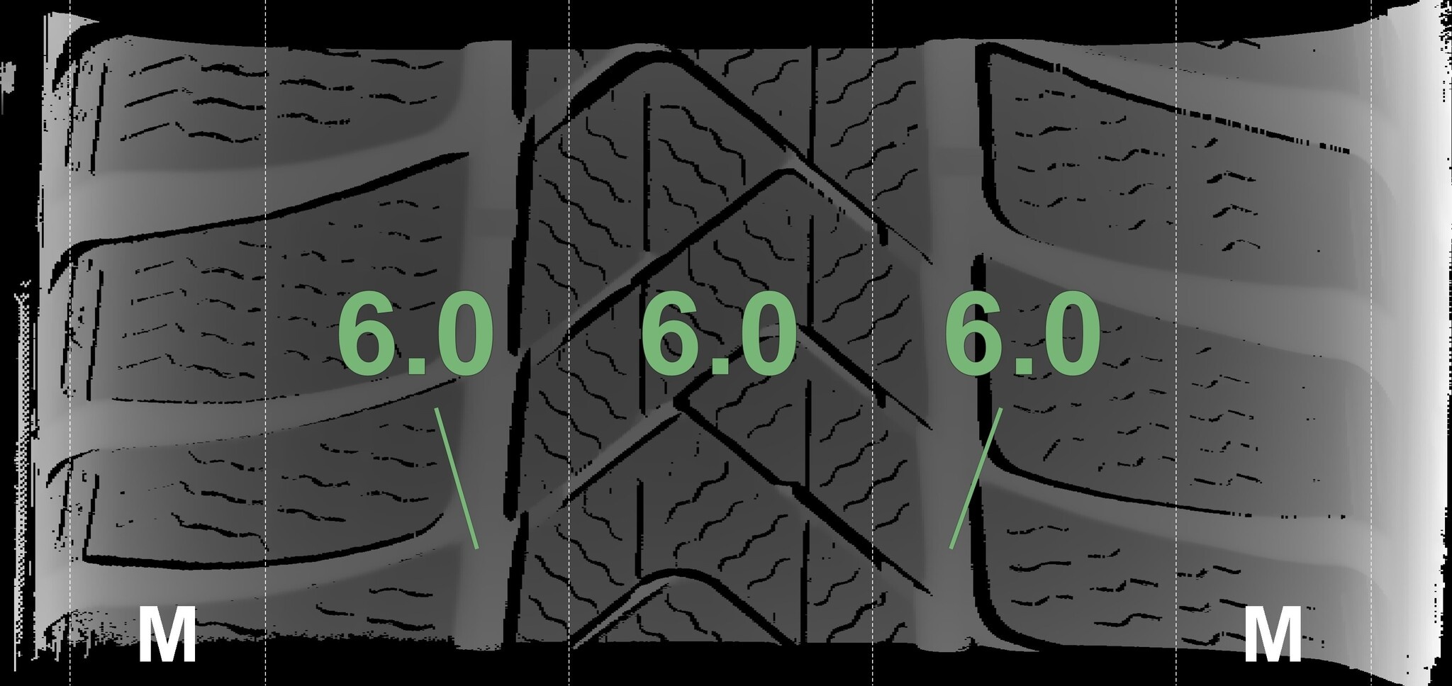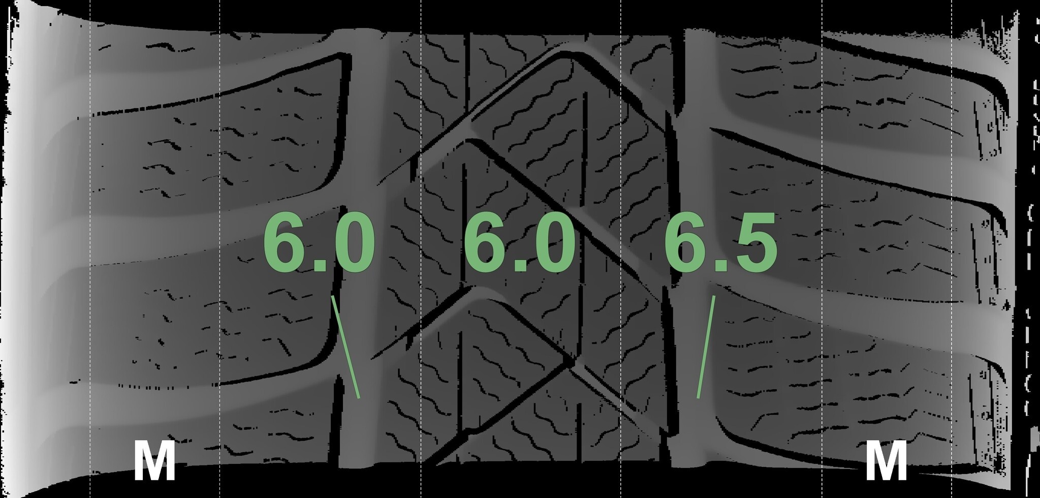 Die gemessenen Profiltiefen und die Details der Felgen sind oben dargestellt.