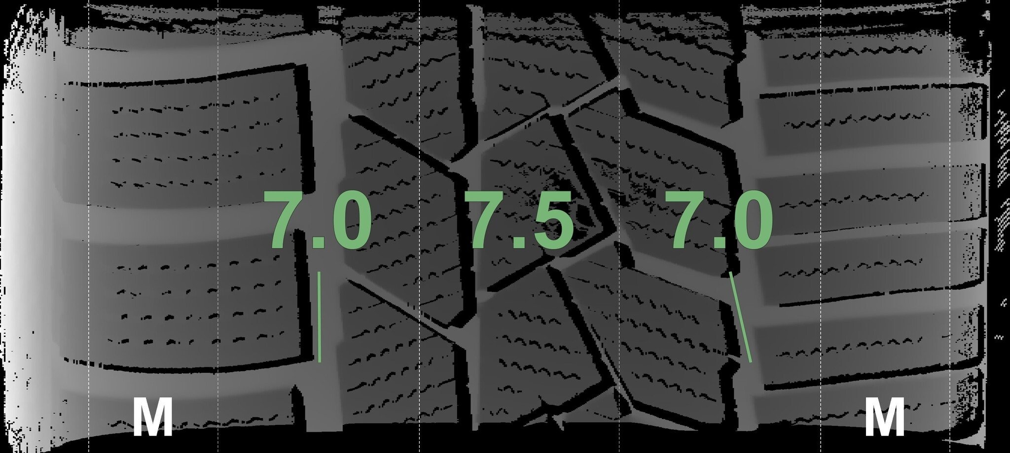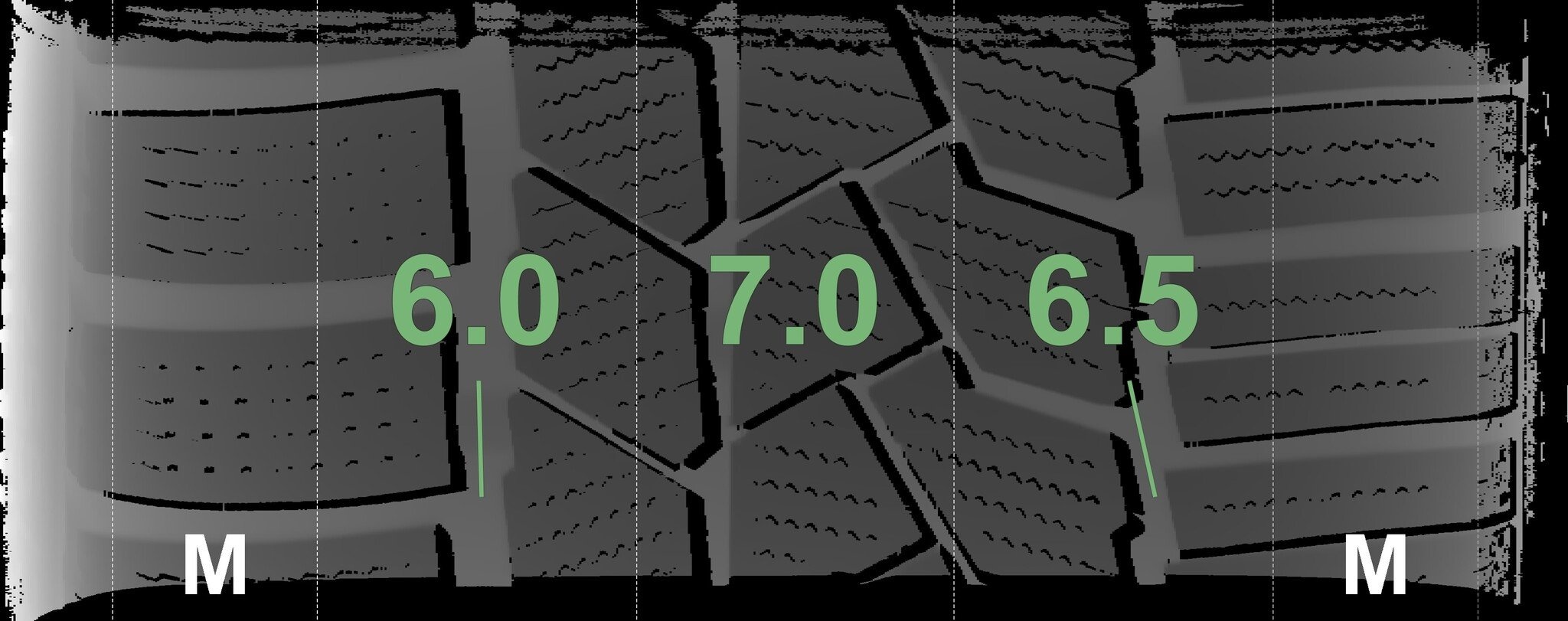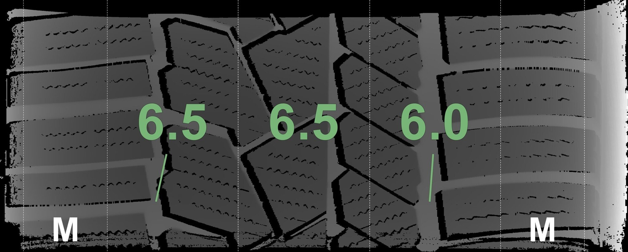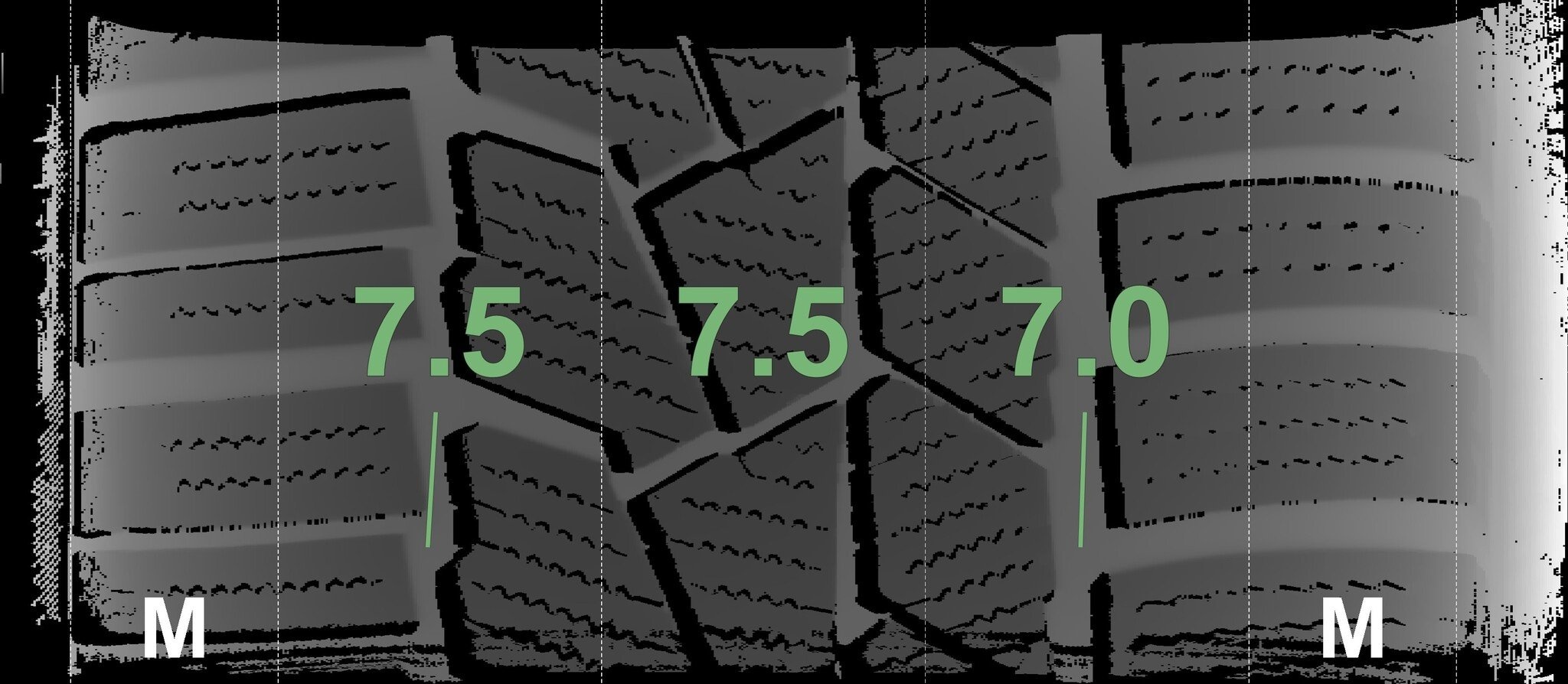 Die gemessenen Profiltiefen und die Details der Felgen sind oben angezeigt.