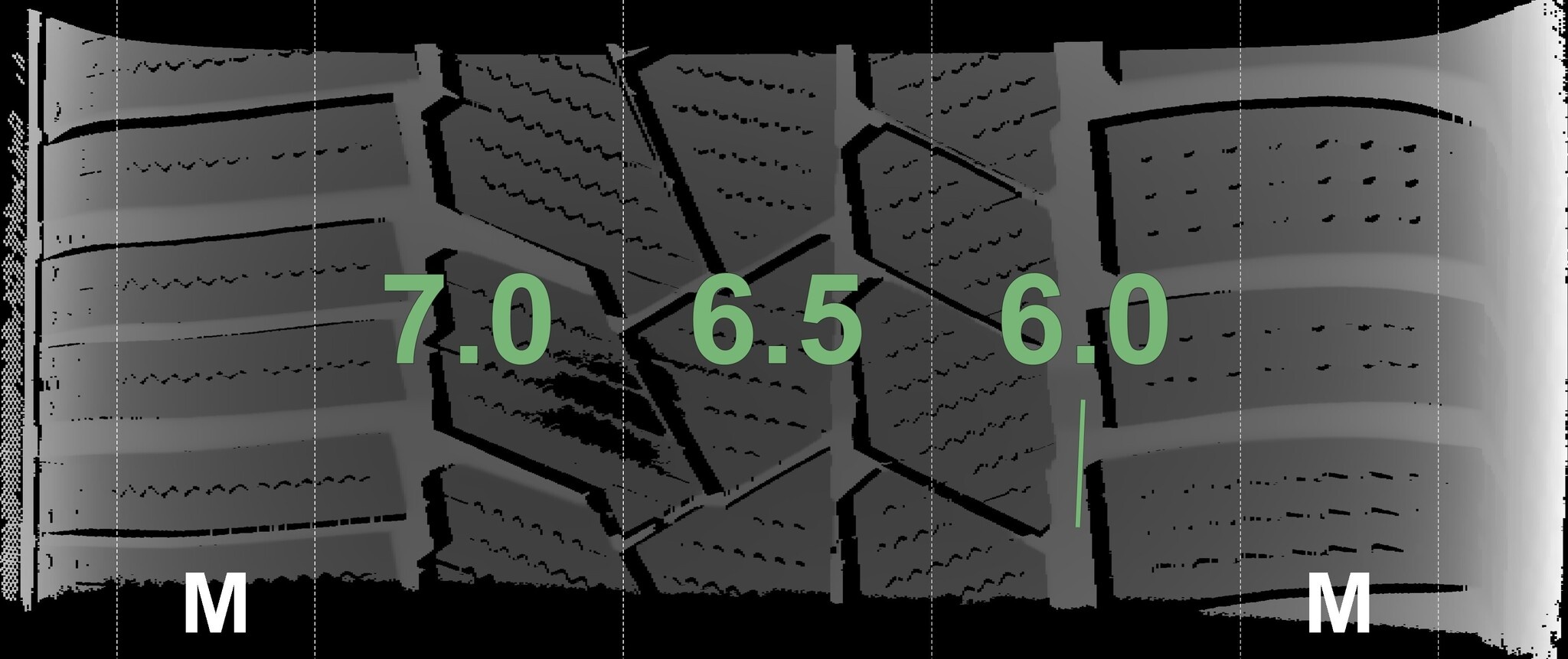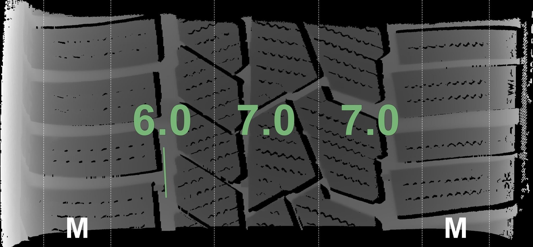 Die gemessenen Profiltiefen und die Details der Felgen sind oben aufgeführt.