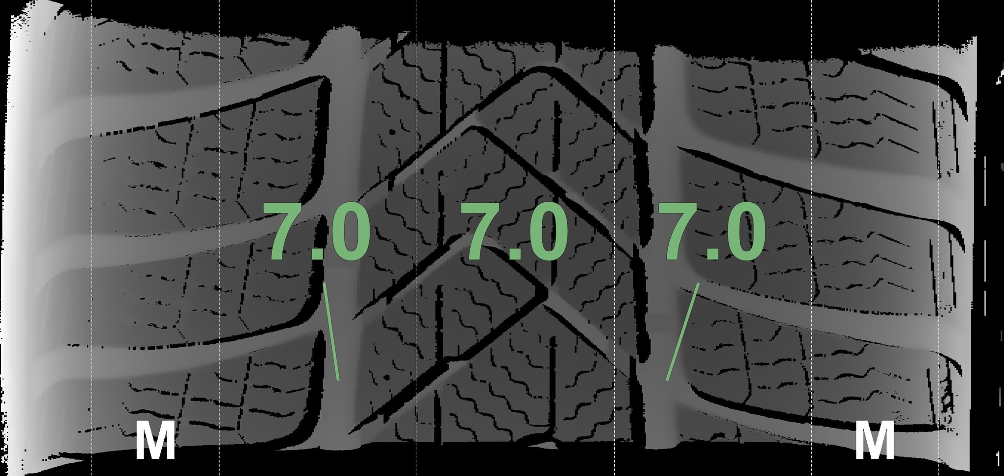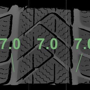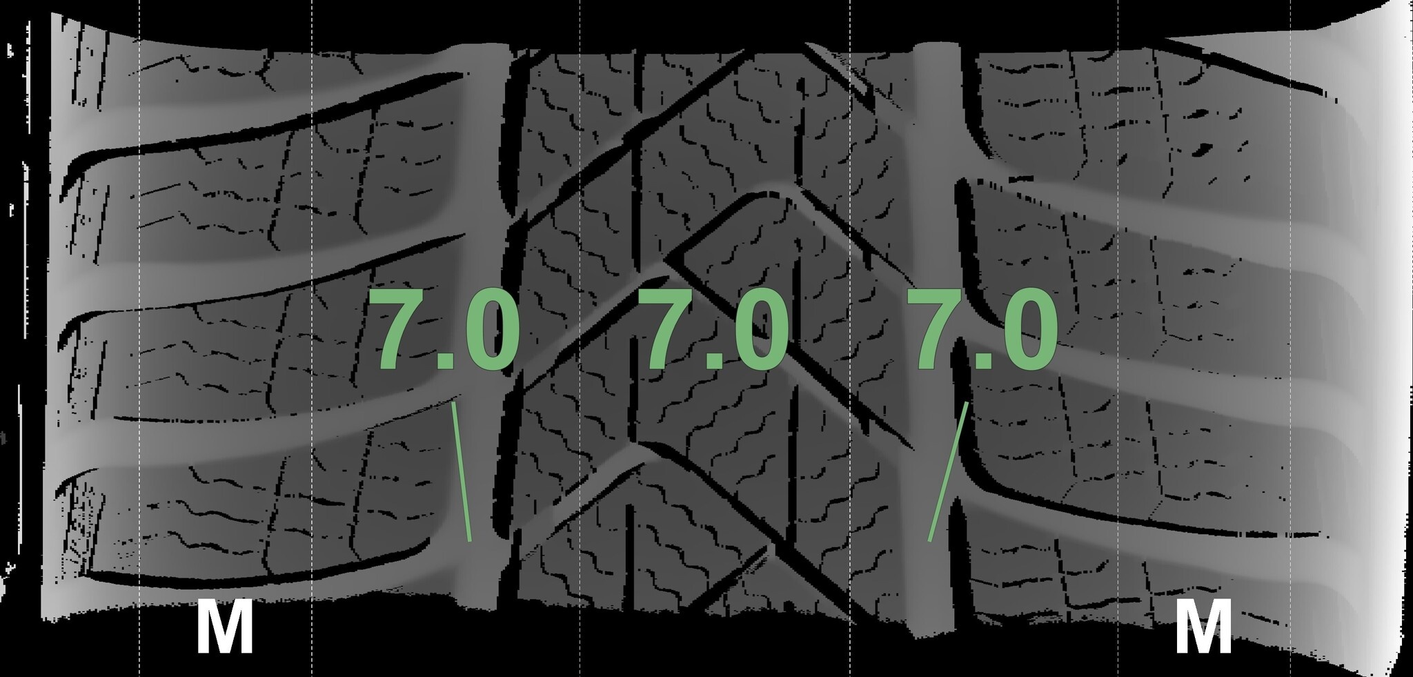 Die gemessenen Profiltiefen und die Details der Felgen sind oben angegeben.