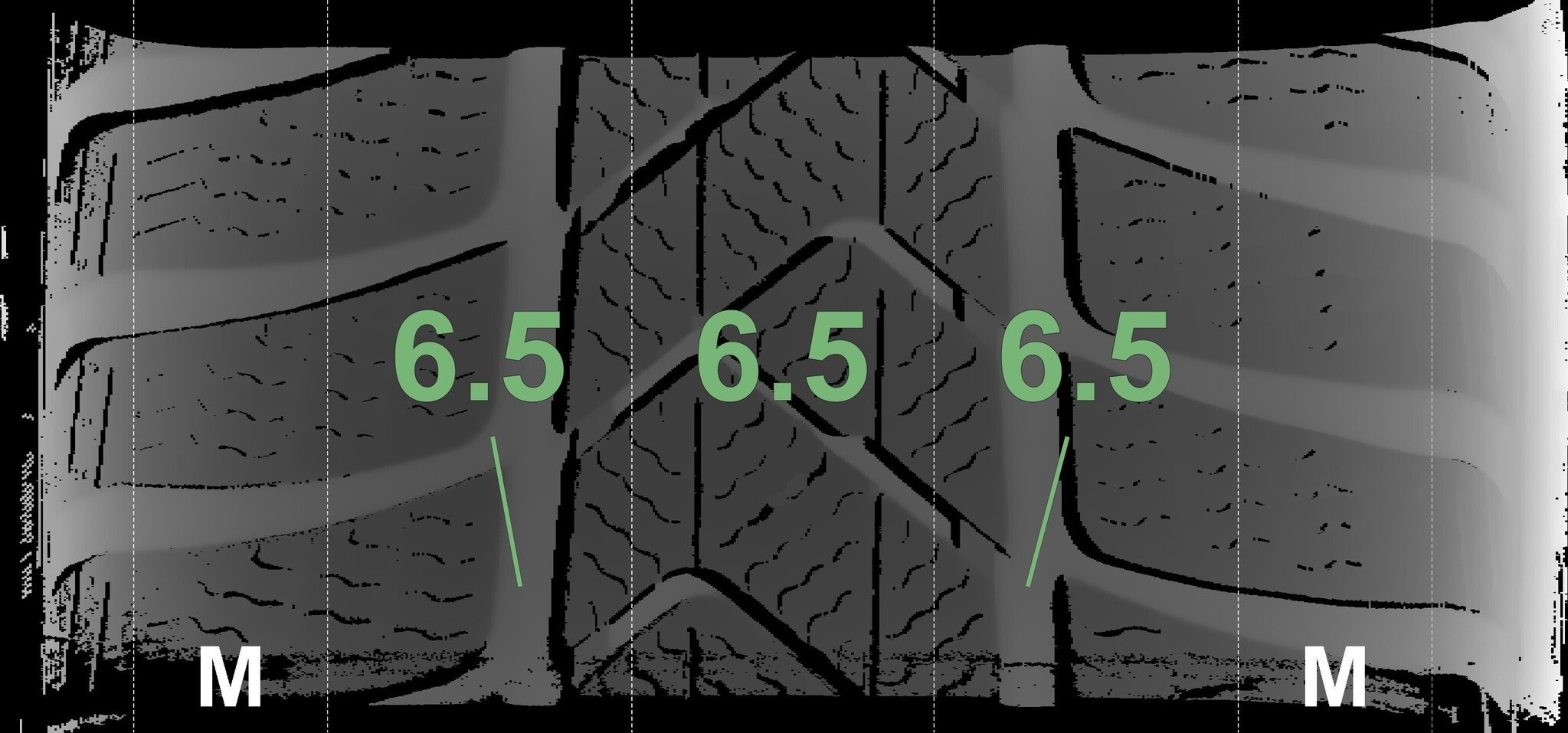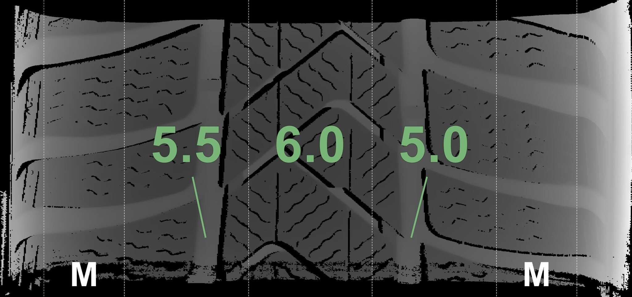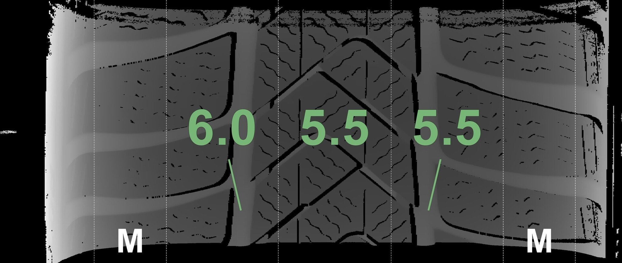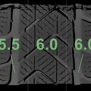 Die gemessenen Profiltiefen und die Details der Felgen sind oben dargestellt.