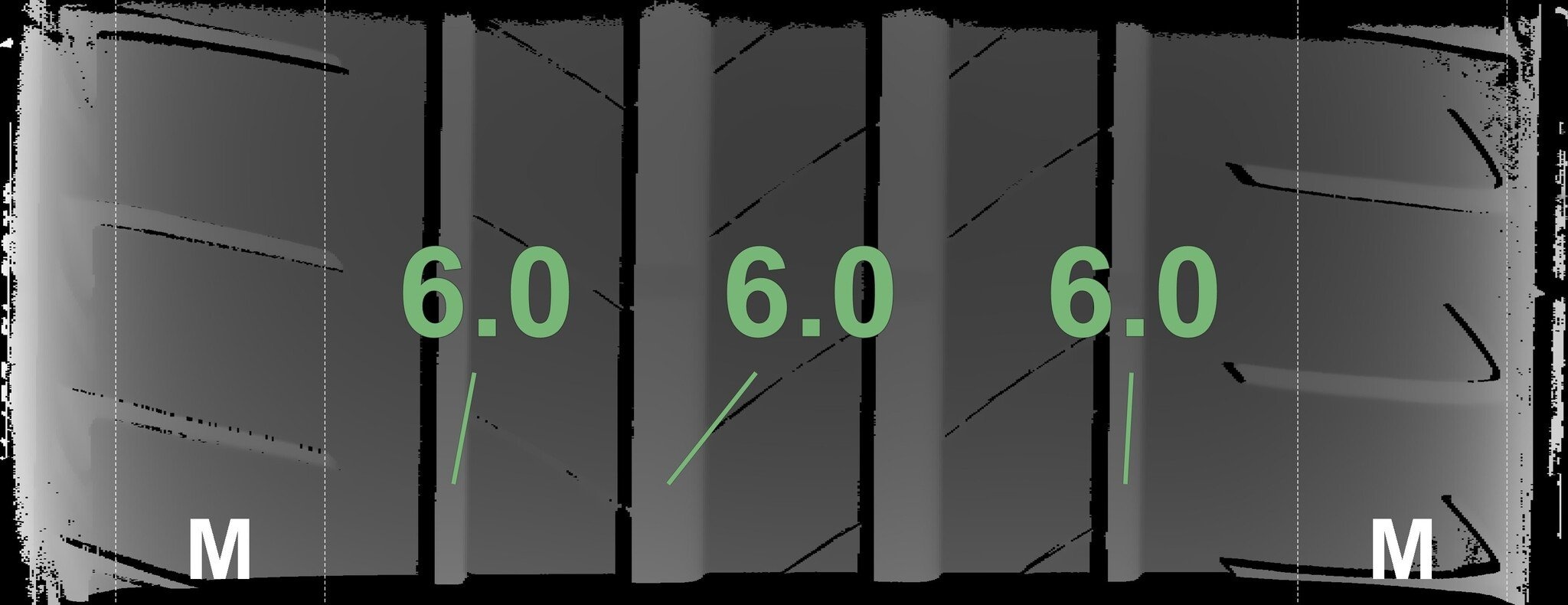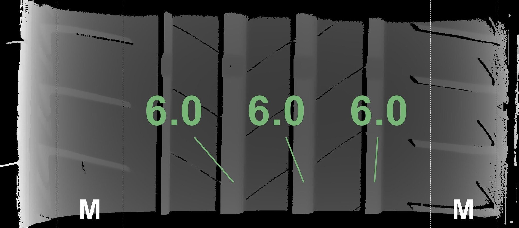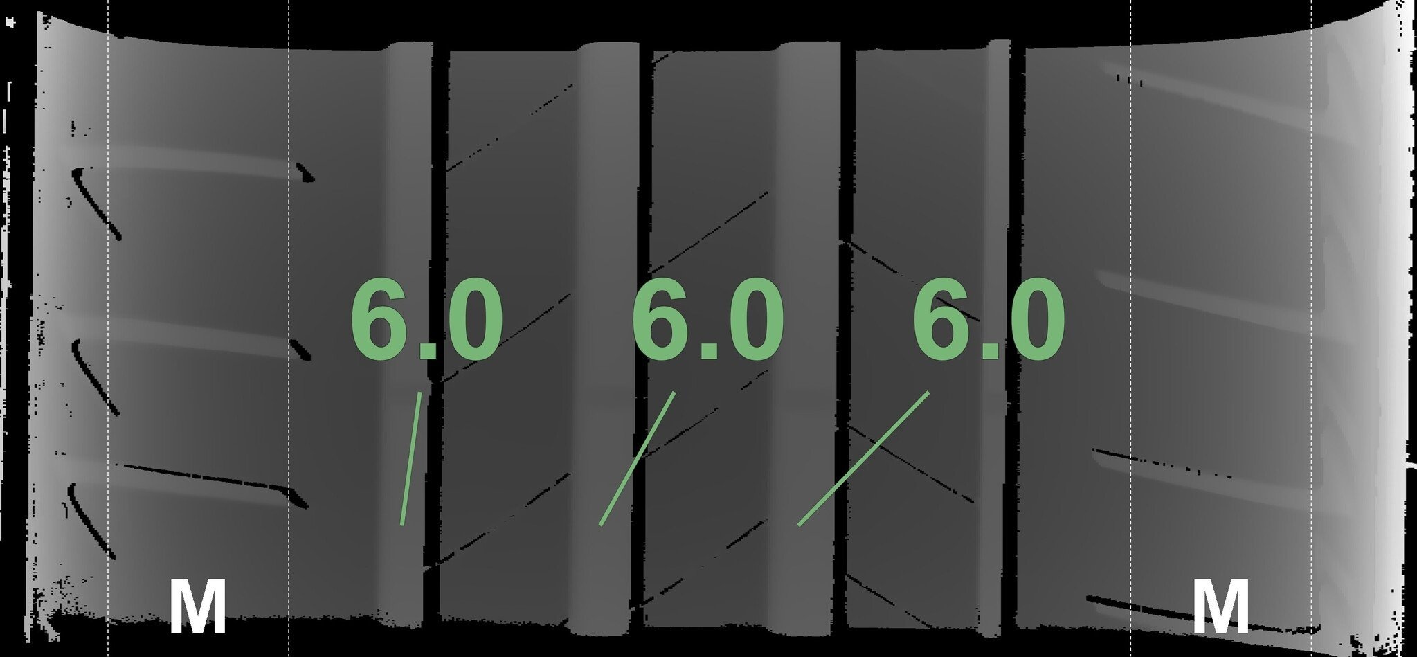 Die gemessenen Profiltiefen und die Details der Felgen sind oben dargestellt.