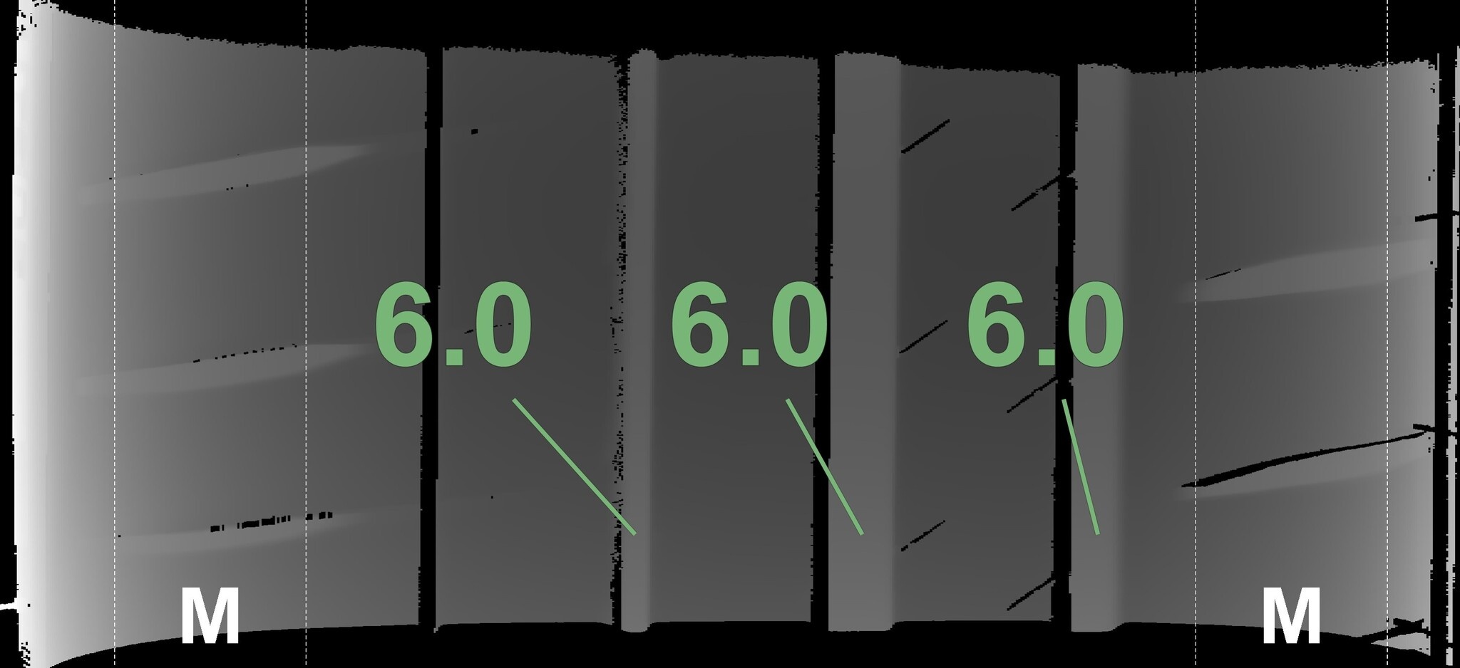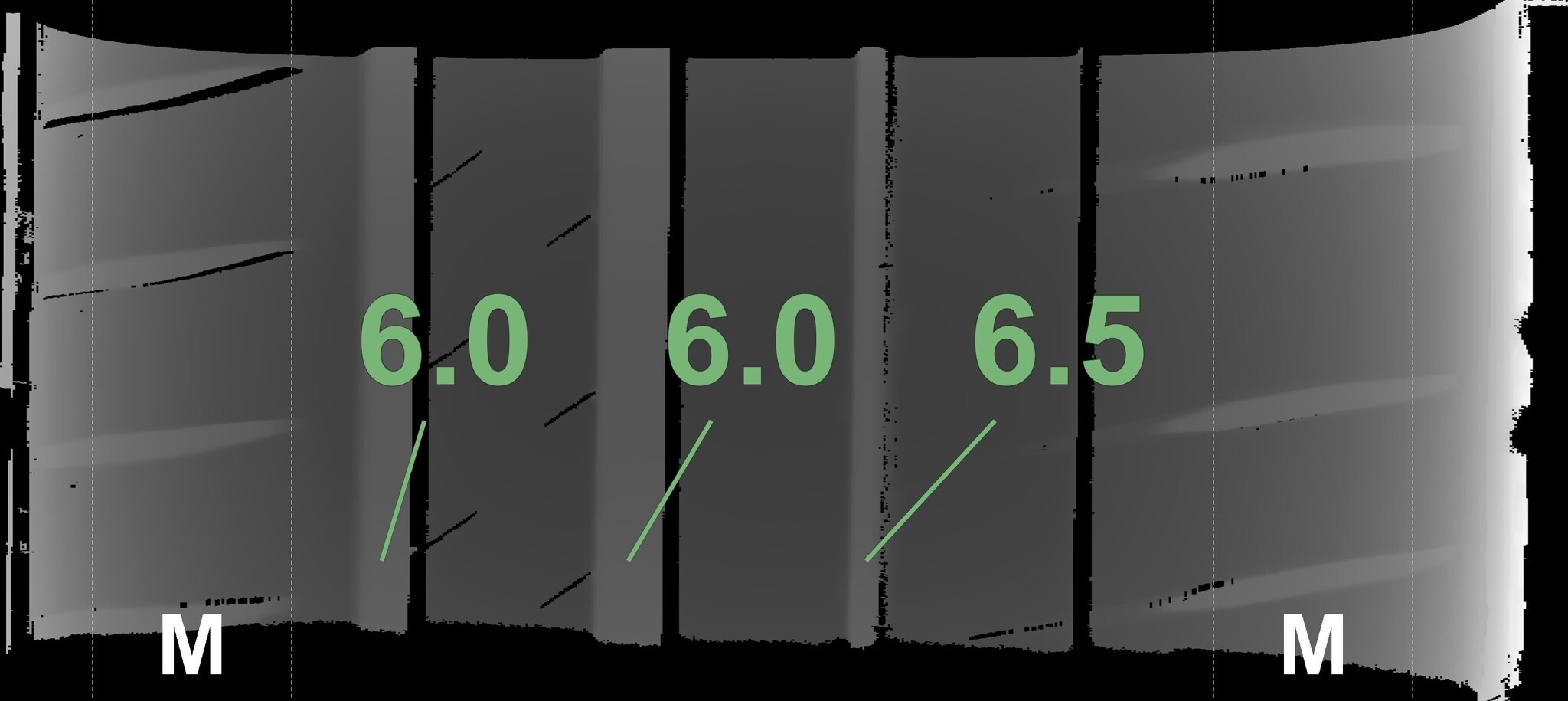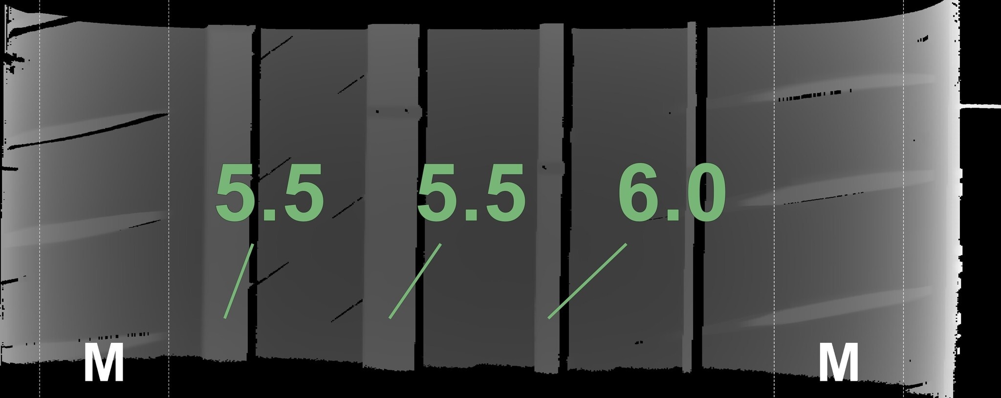Die gemessenen Profiltiefen und die Details der Felgen sind oben dargestellt.