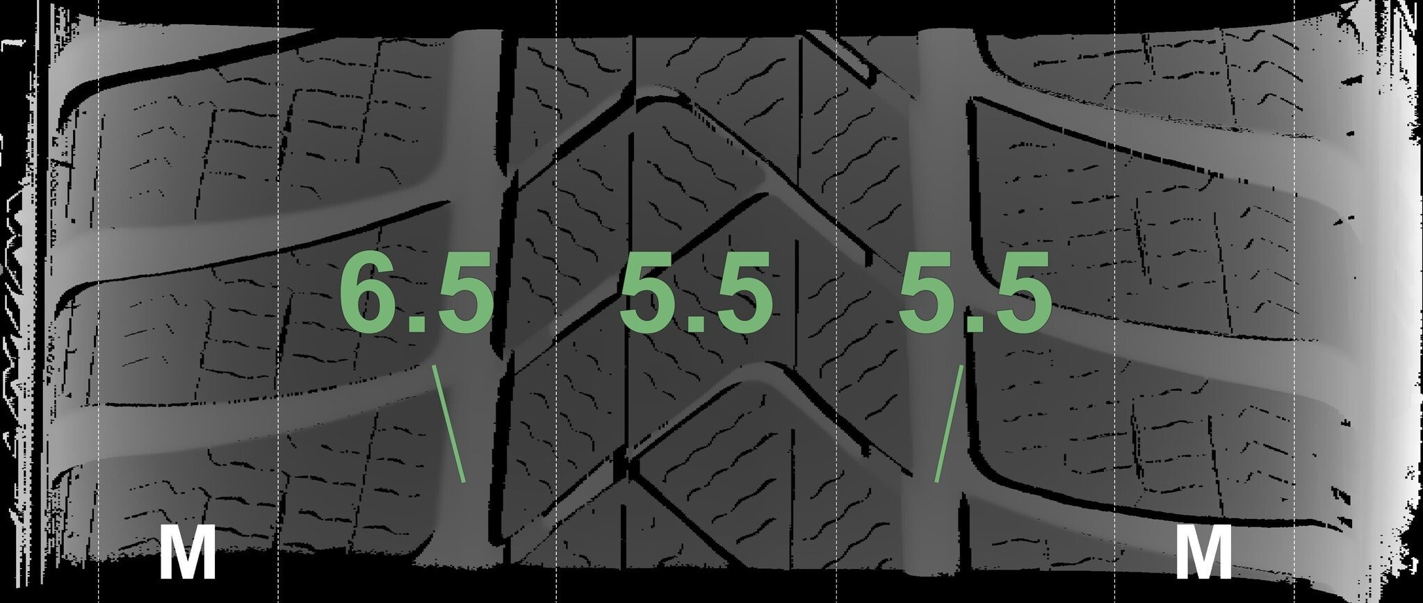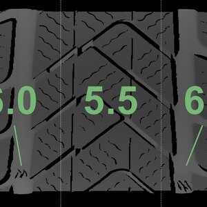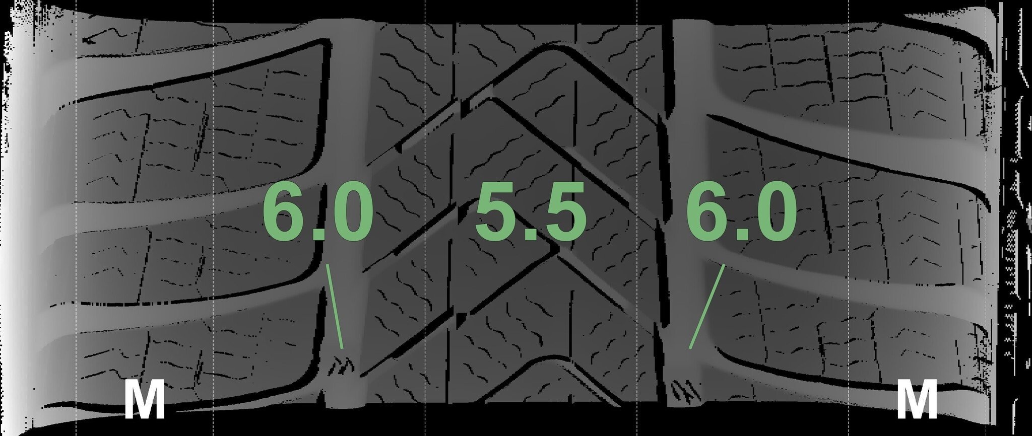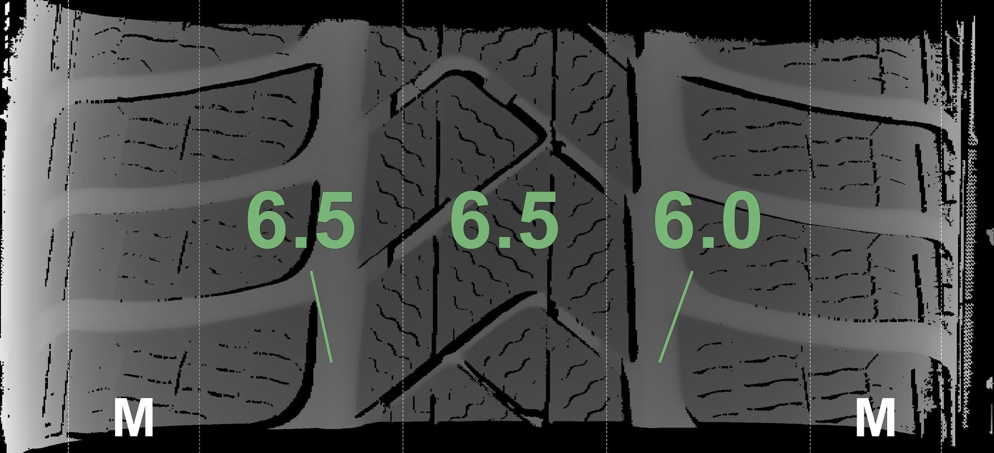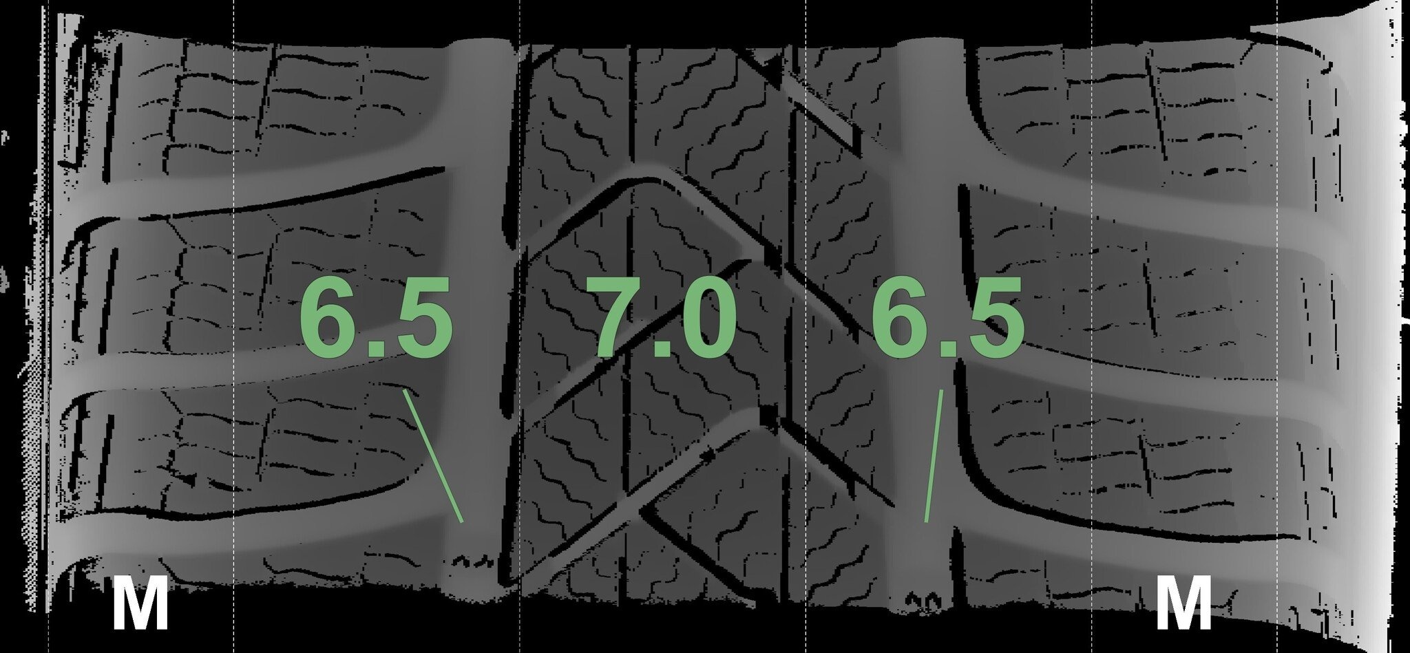 Die gemessenen Profiltiefen und die Details der Felgen sind oben dargestellt.