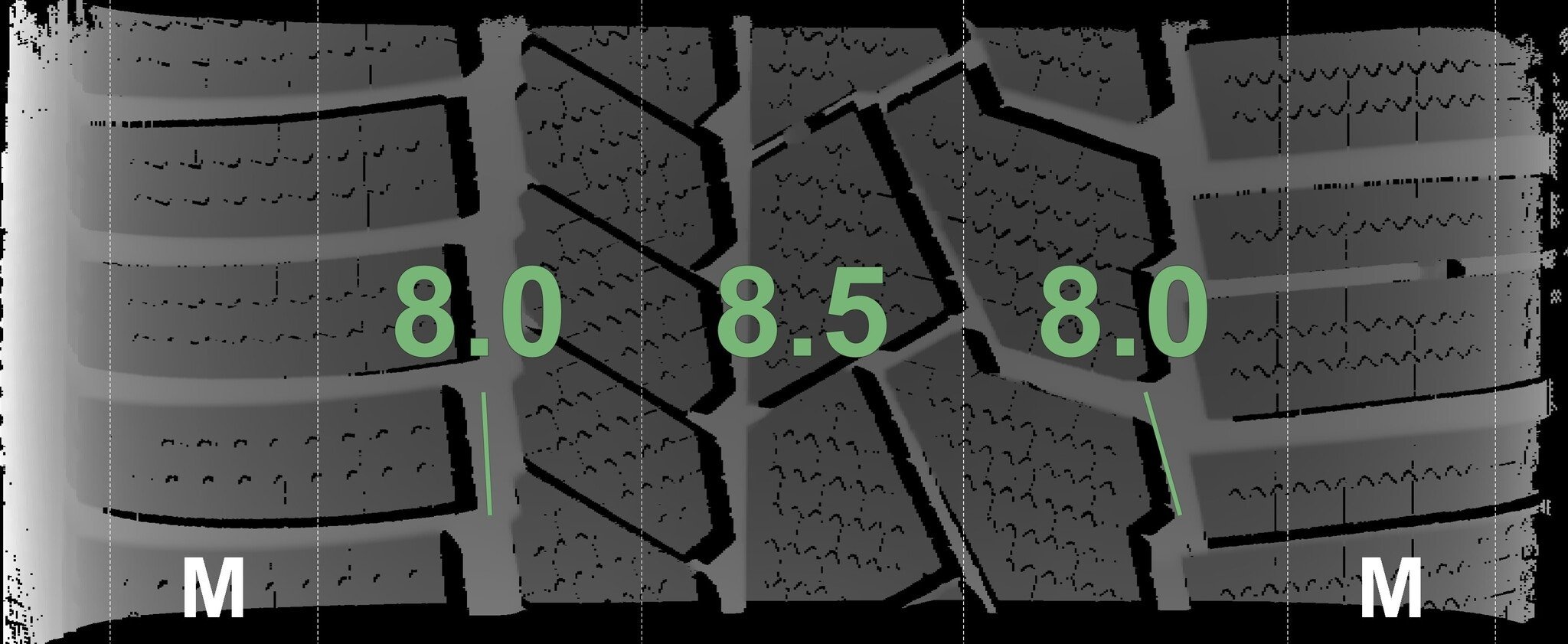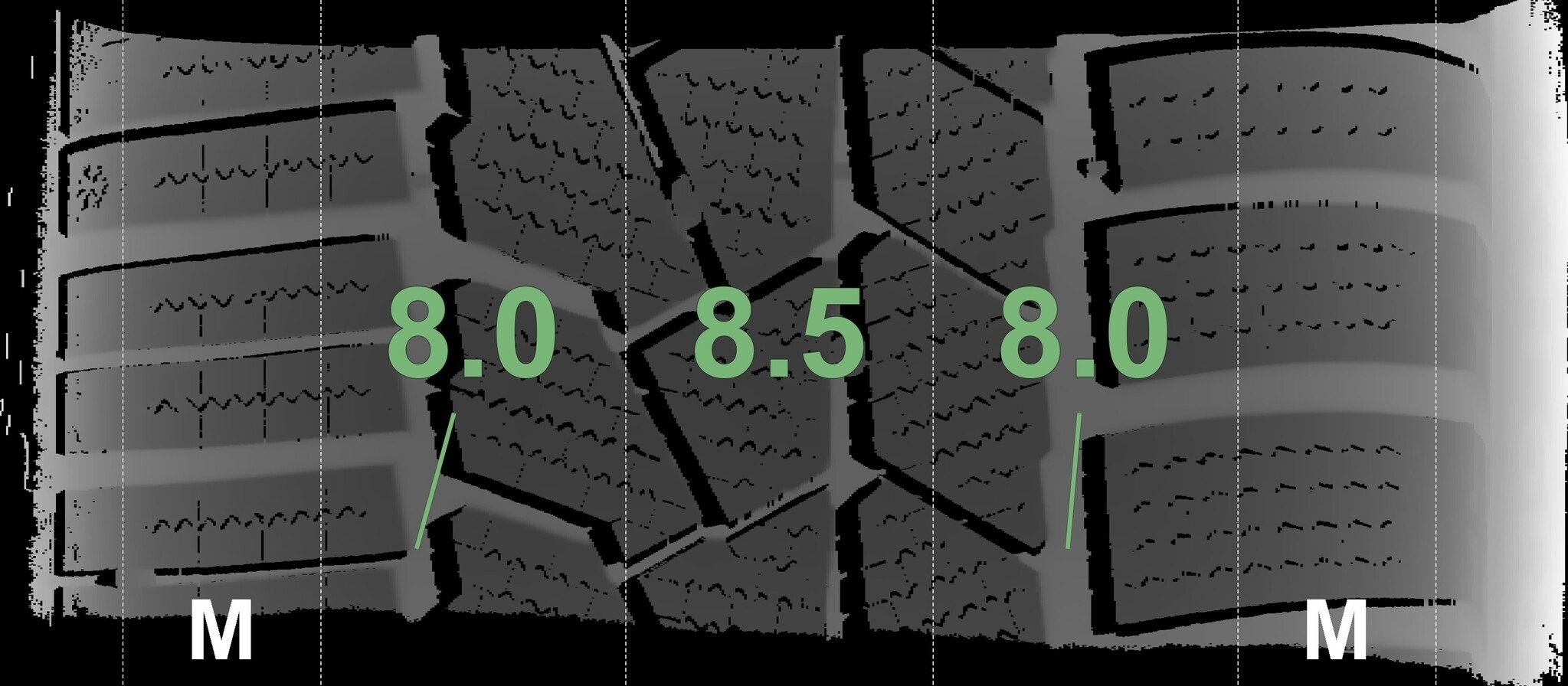 | Zustand | Profiltiefe | DOT | Vorderachse Rechts | Demo Noppen noch sichtbar | 8.2 mm | 2124 |
