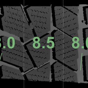 Die gemessenen Profiltiefen und die Details der Felgen sind oben dargestellt.
