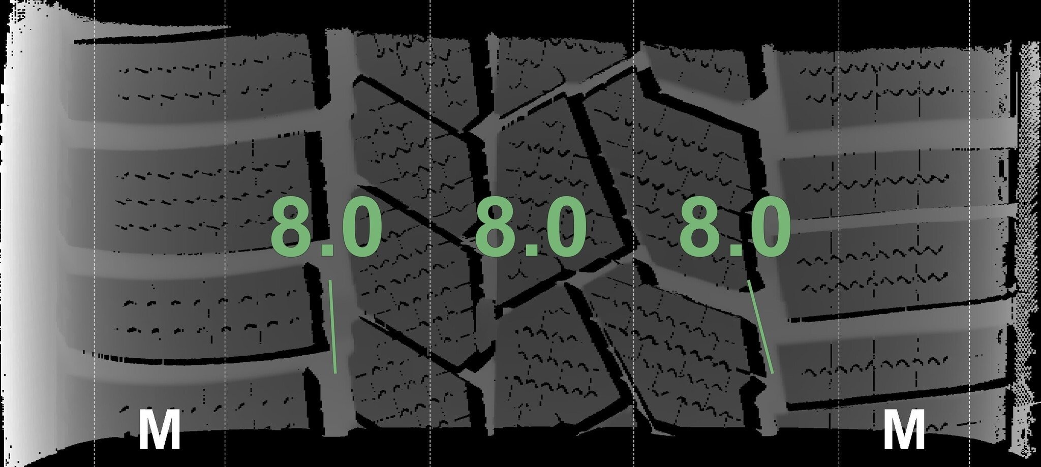 | Zustand | Profiltiefe | DOT | Vorderachse Links | Demo Noppen noch sichtbar | 8.0 mm | 2124 |