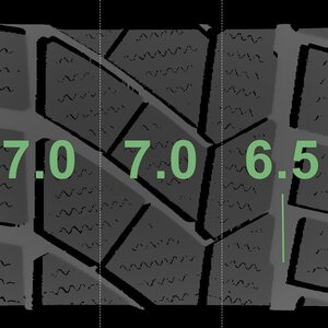 Die gemessenen Profiltiefen und die Details der Felgen sind oben aufgeführt.