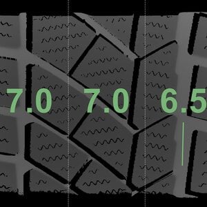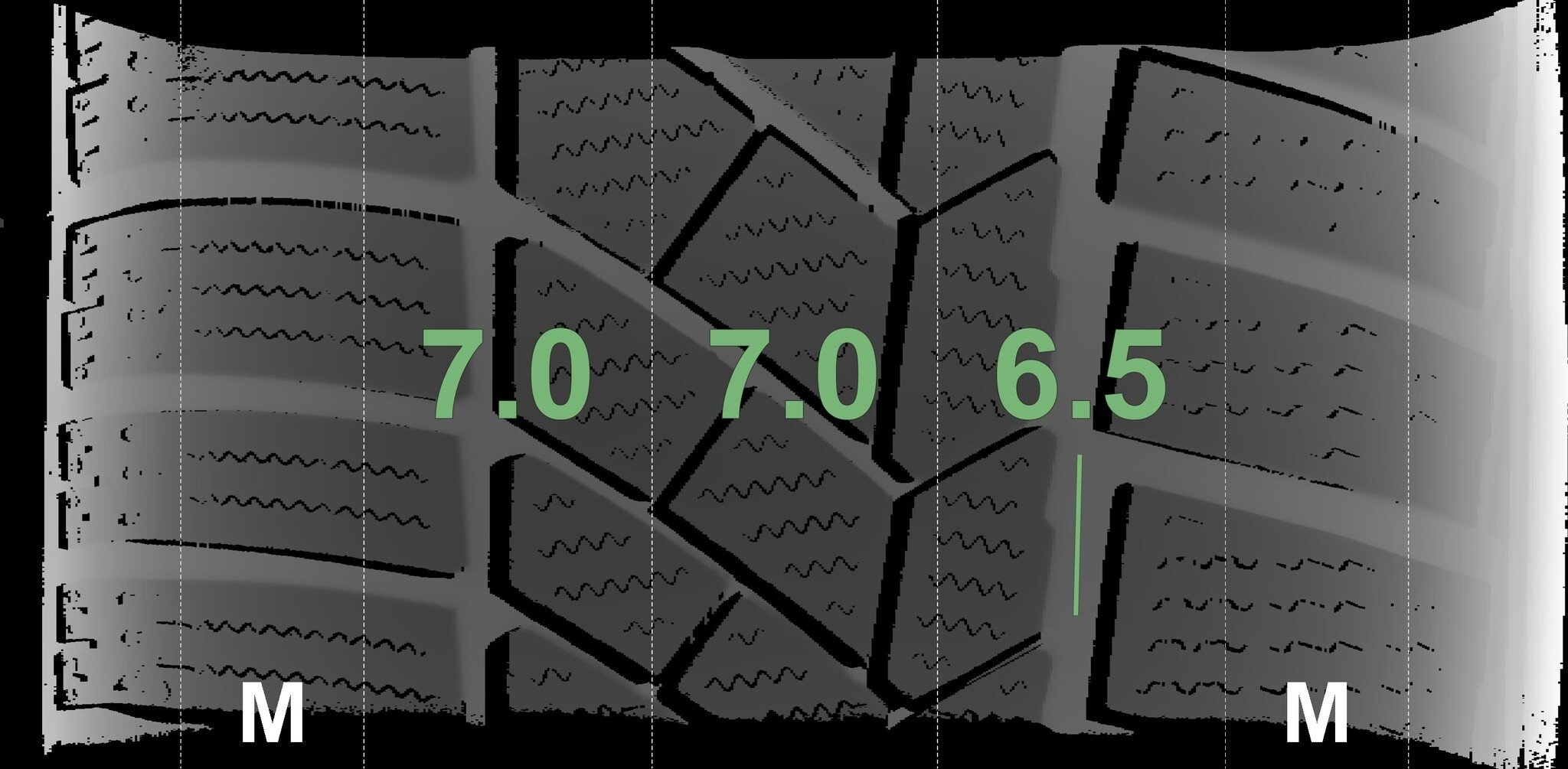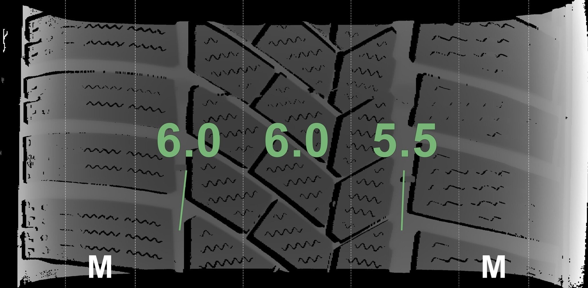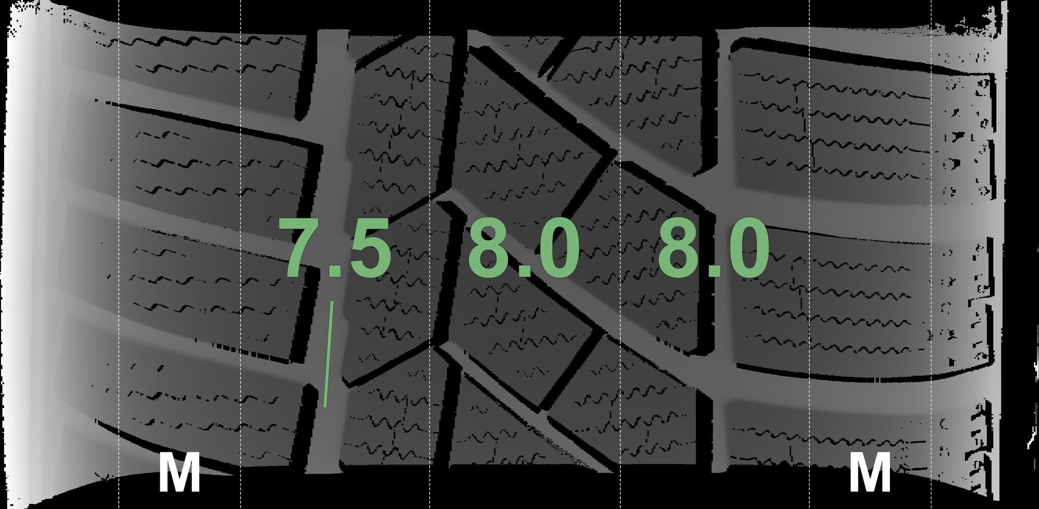Die gemessenen Profiltiefen und die Details der Felgen sind oben angezeigt.
