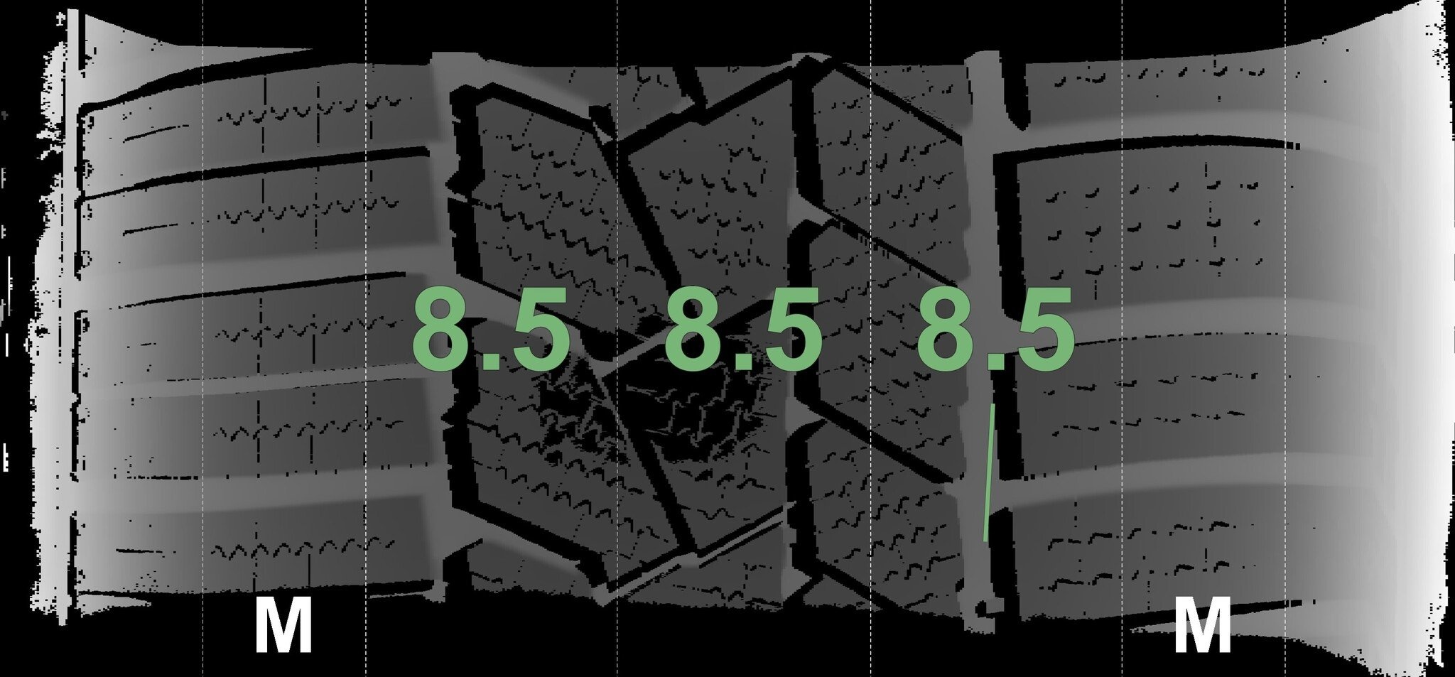 | Zustand | Profiltiefe | DOT | Vorderachse Links | Demo Noppen noch sichtbar | 8.5 mm | 2125 |