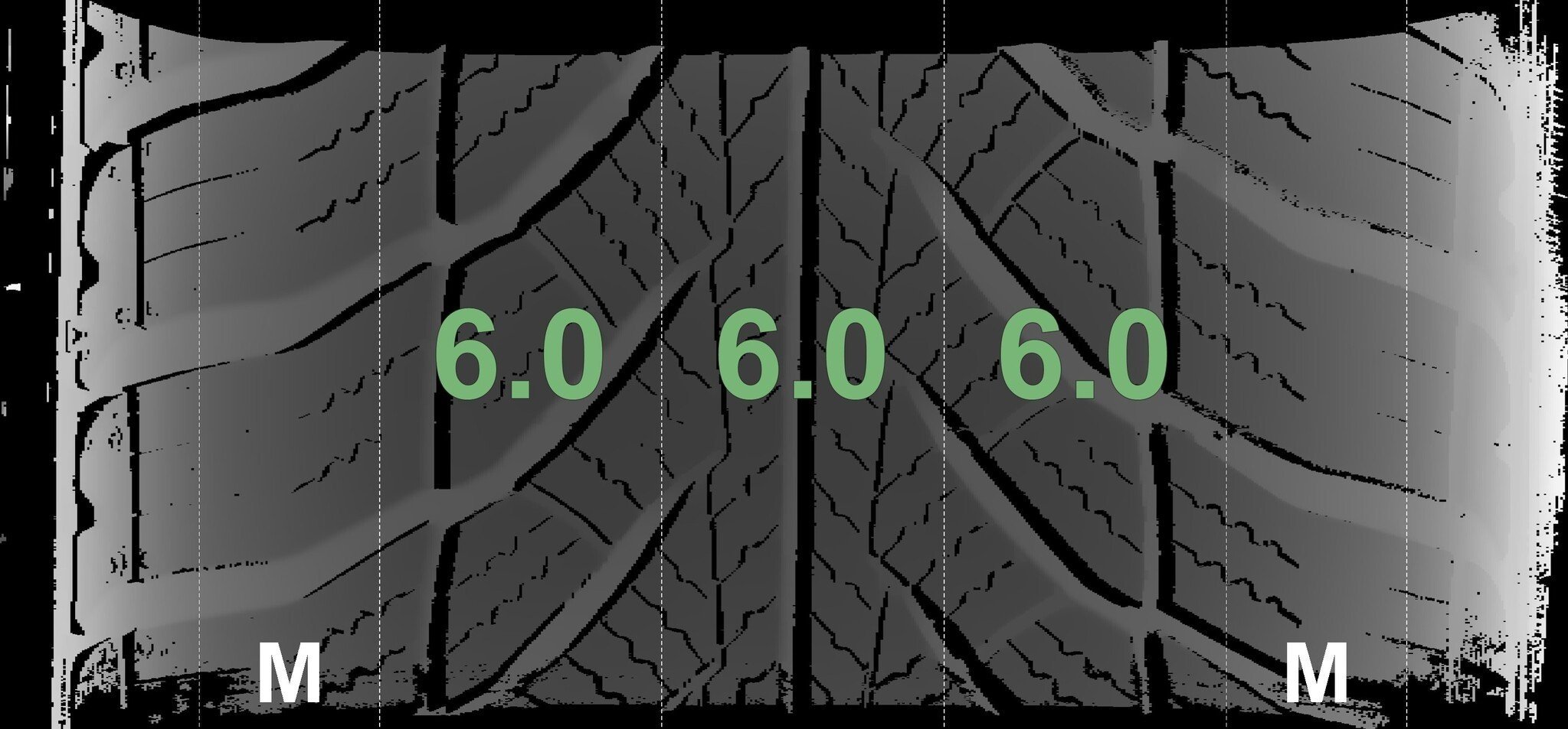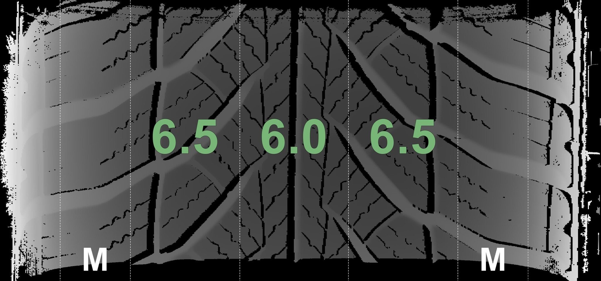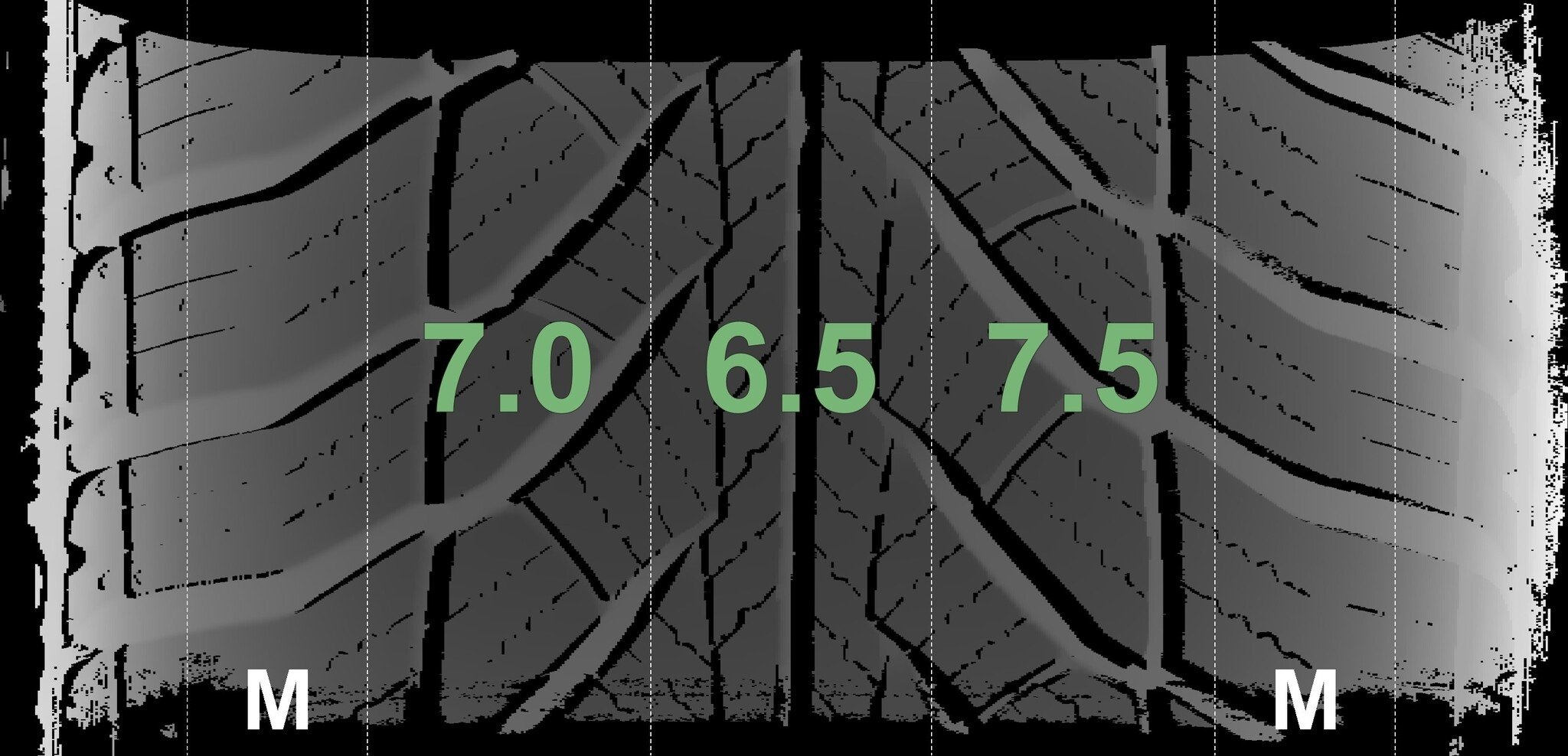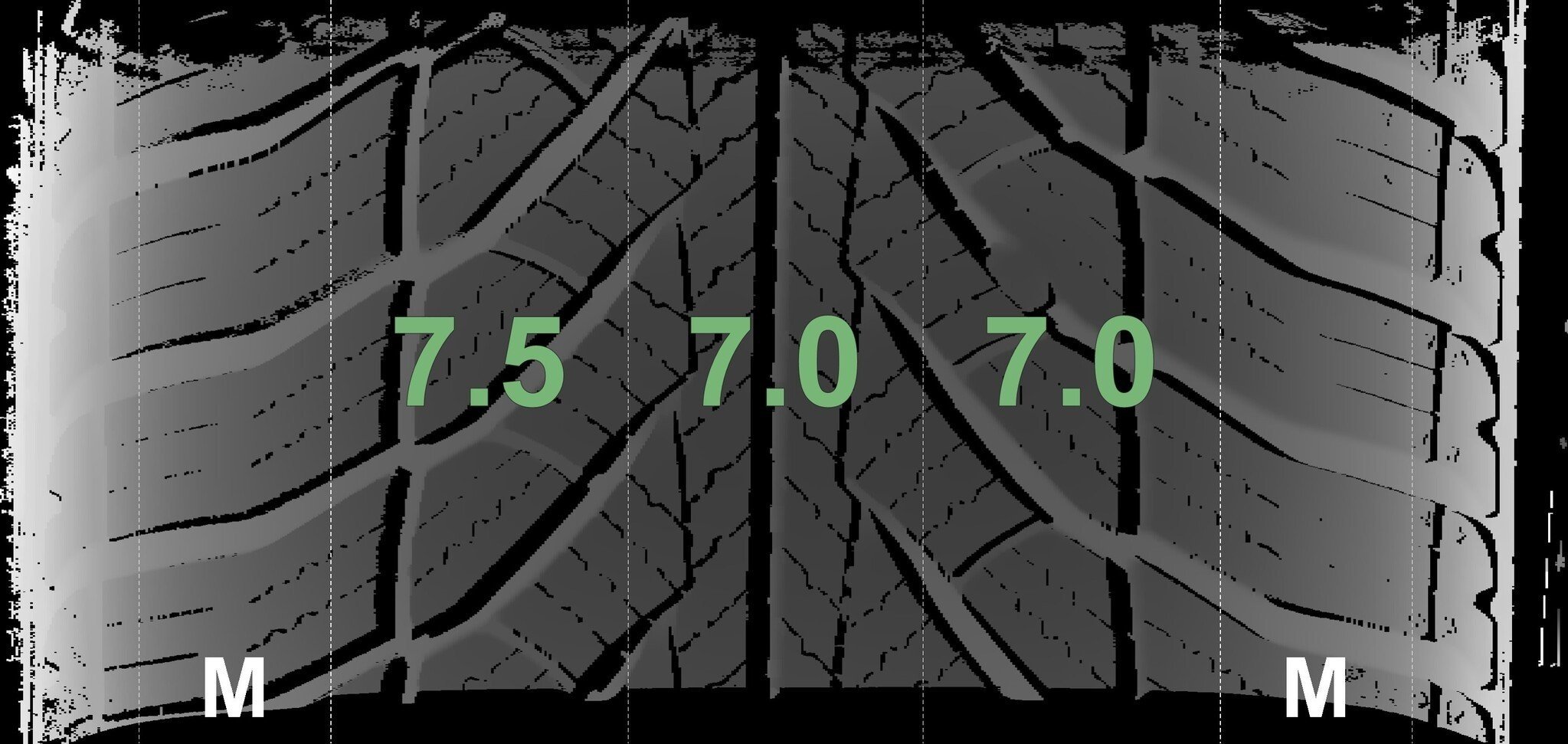 Die gemessenen Profiltiefen und die Details der Felgen sind oben dargestellt.
