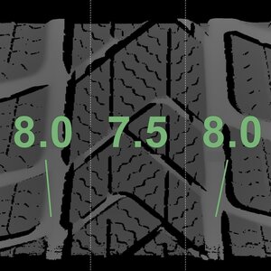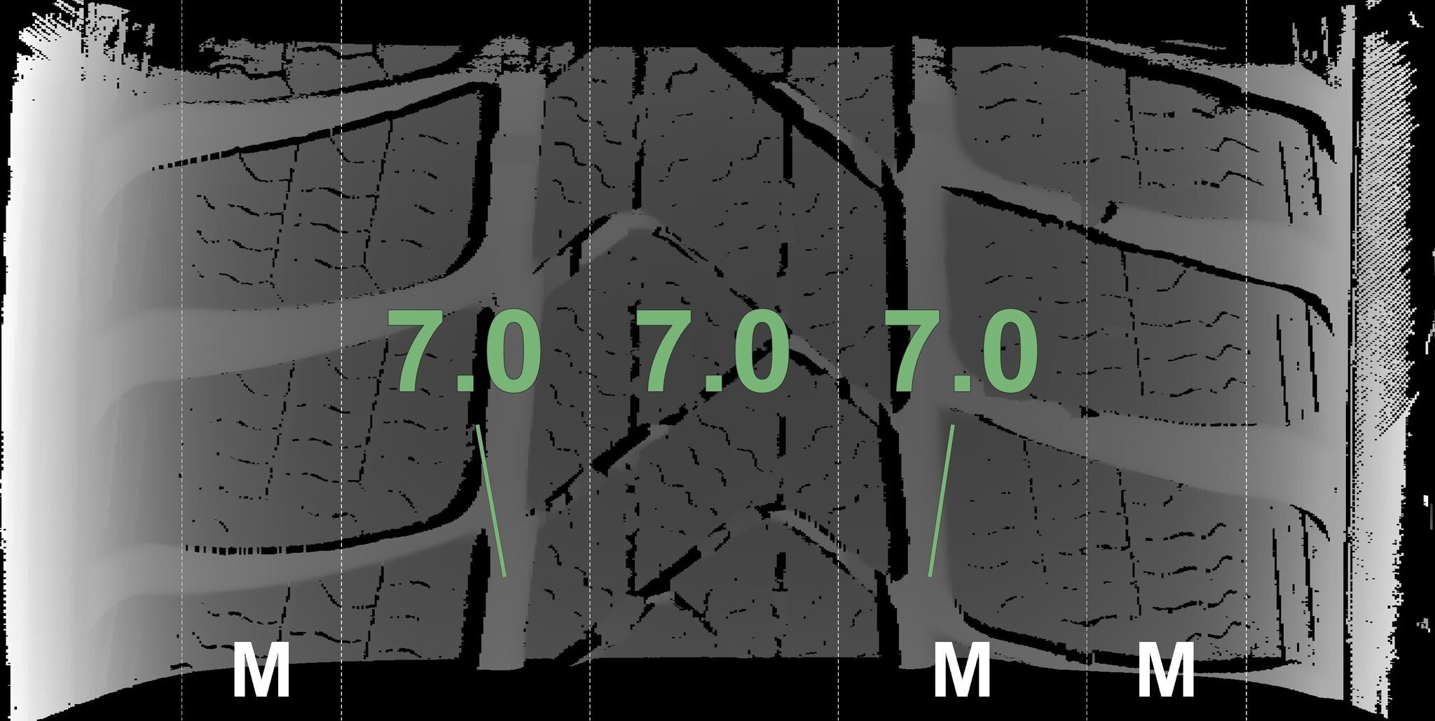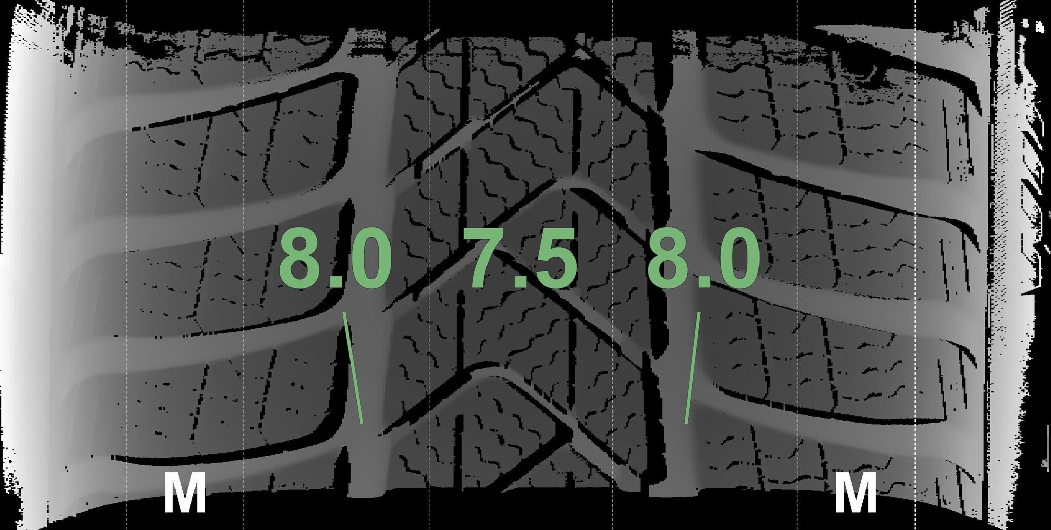 Die gemessenen Profiltiefen und die Details der Felgen sind oben angegeben.