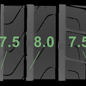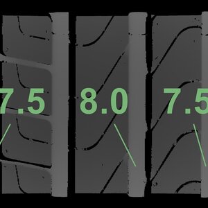 Die gemessenen Profiltiefen und Details zu den Felgen sind oben abgebildet.