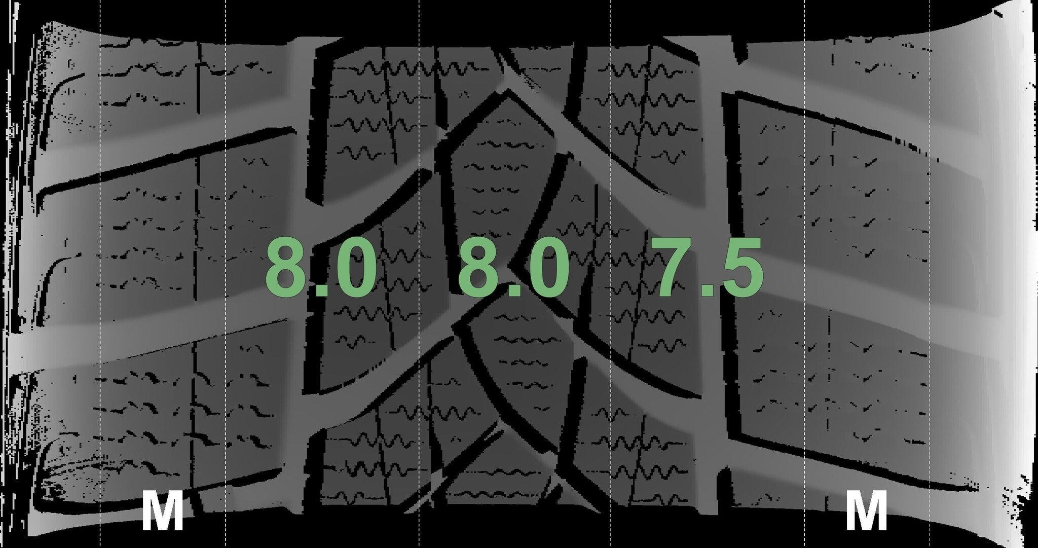 Die gemessenen Profiltiefen und Details zu den Felgen sind oben abgebildet.