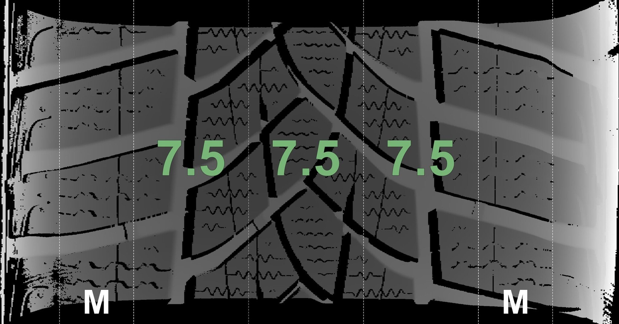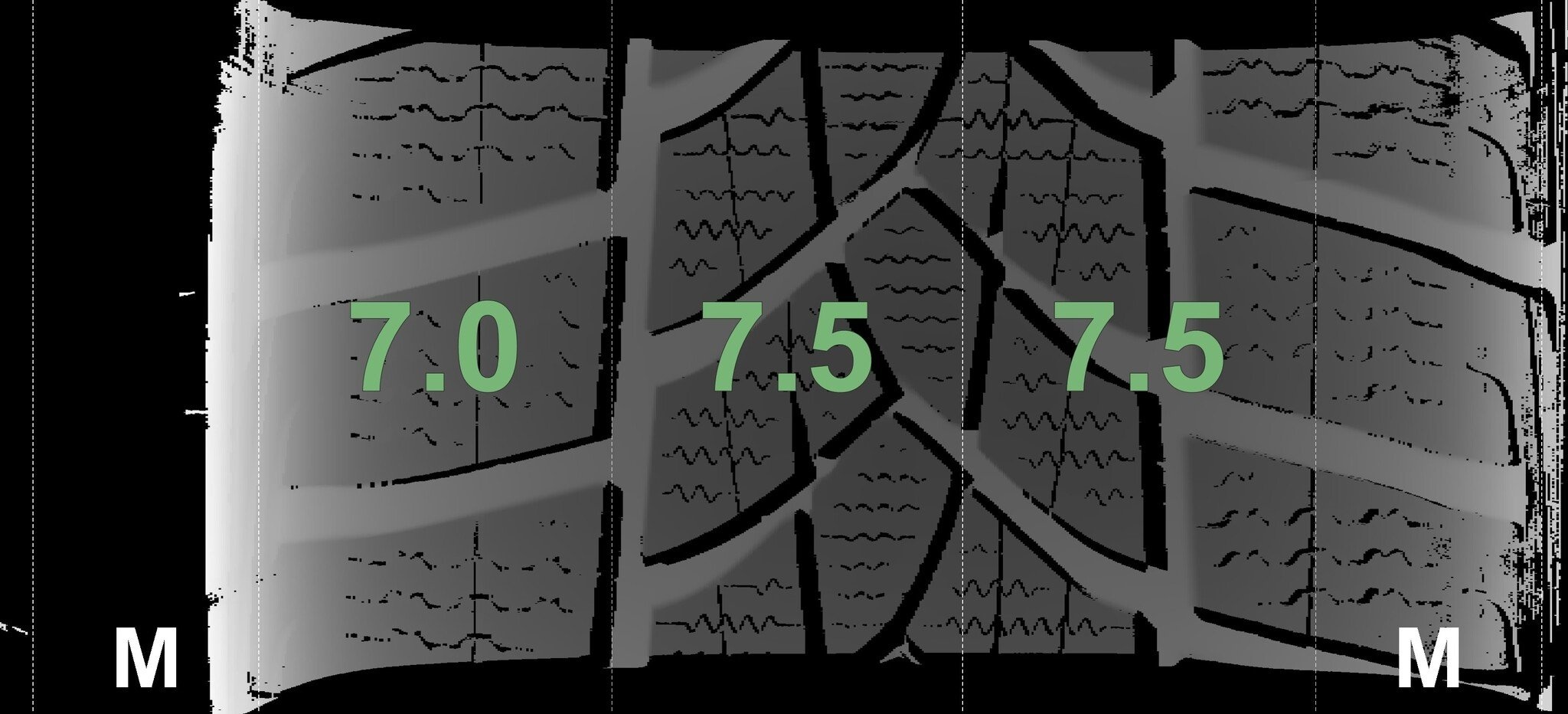Zustand | Profiltiefe | DOT | Vorderachse Rechts | Gebraucht | 7,5 mm | 3519 |
