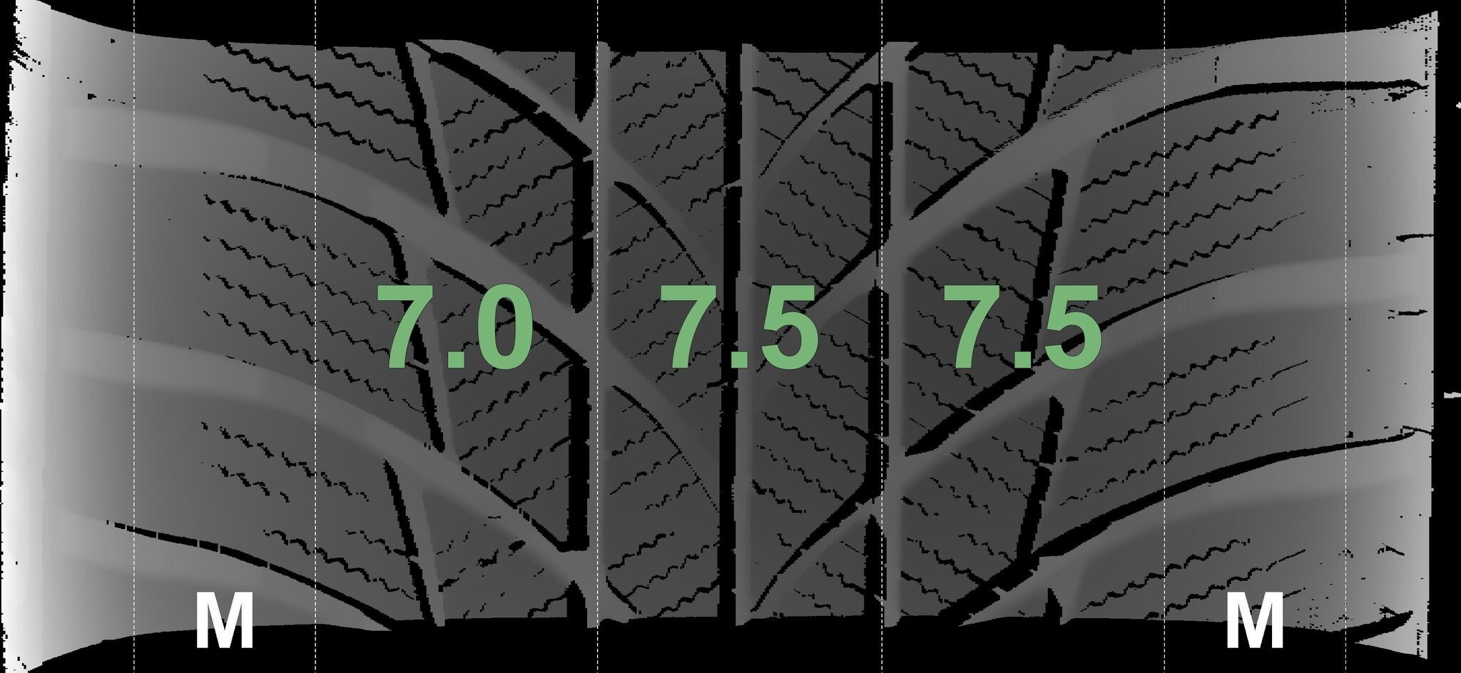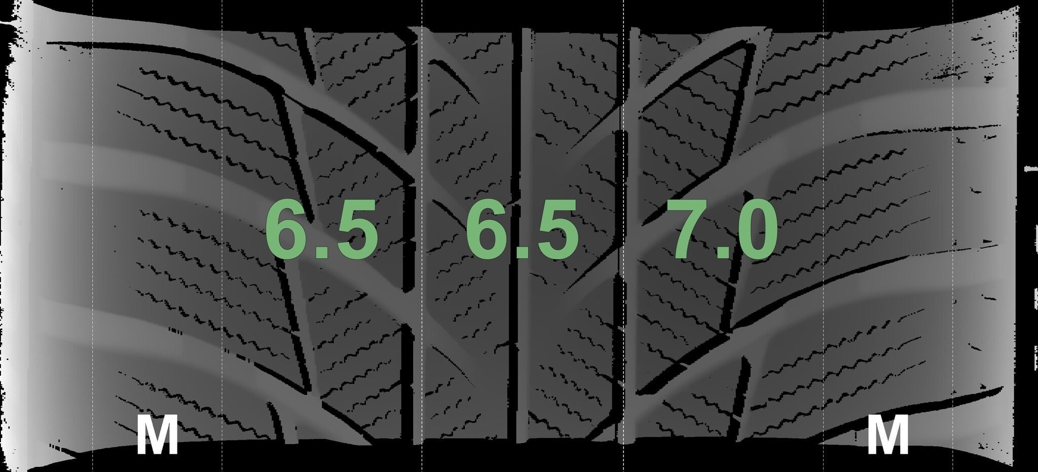 Die gemessenen Profiltiefen und Details zu den Felgen sind oben abgebildet.