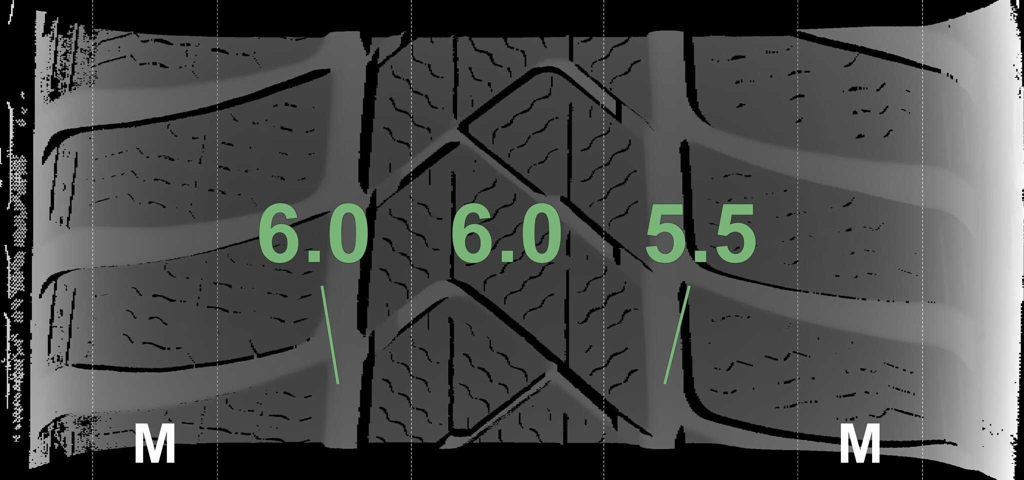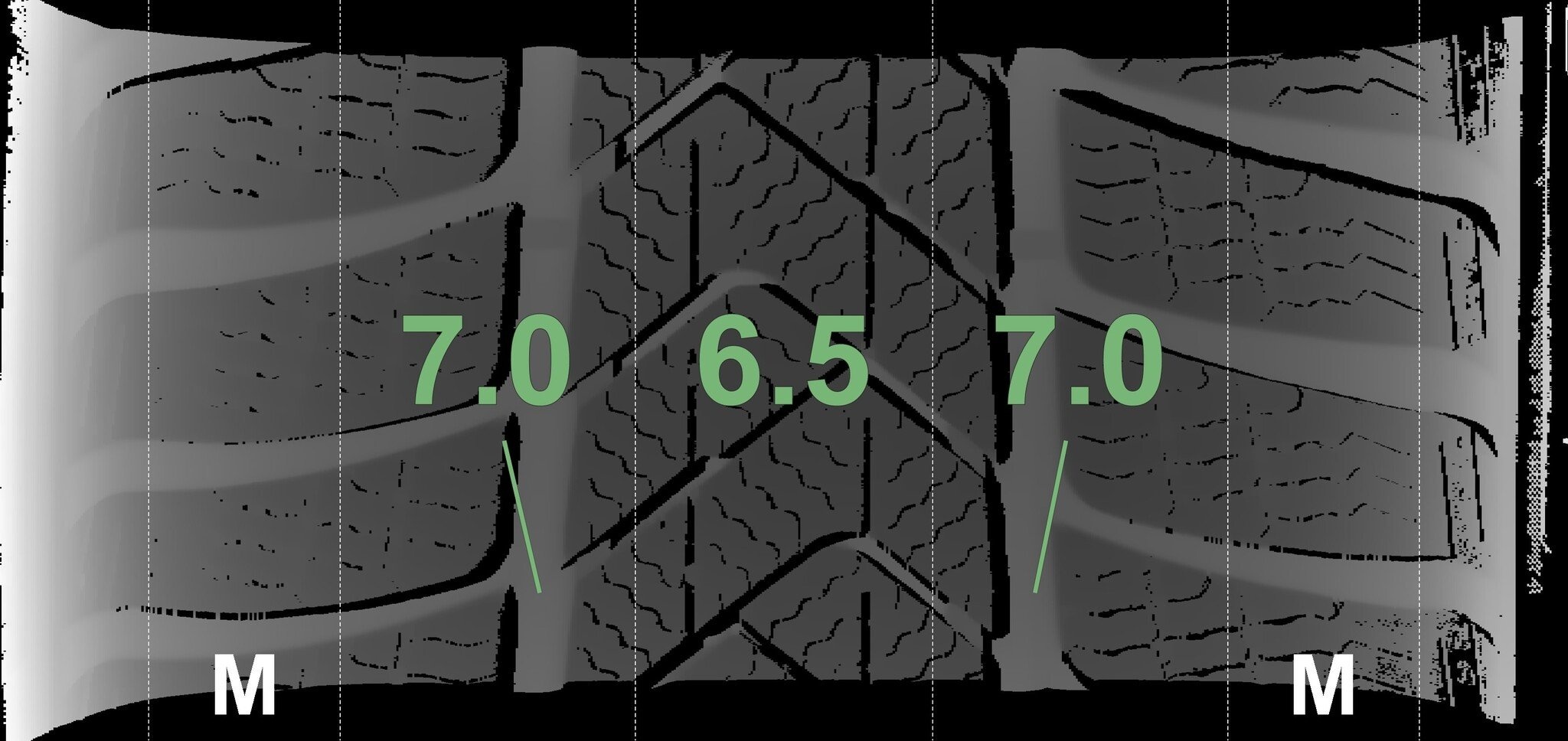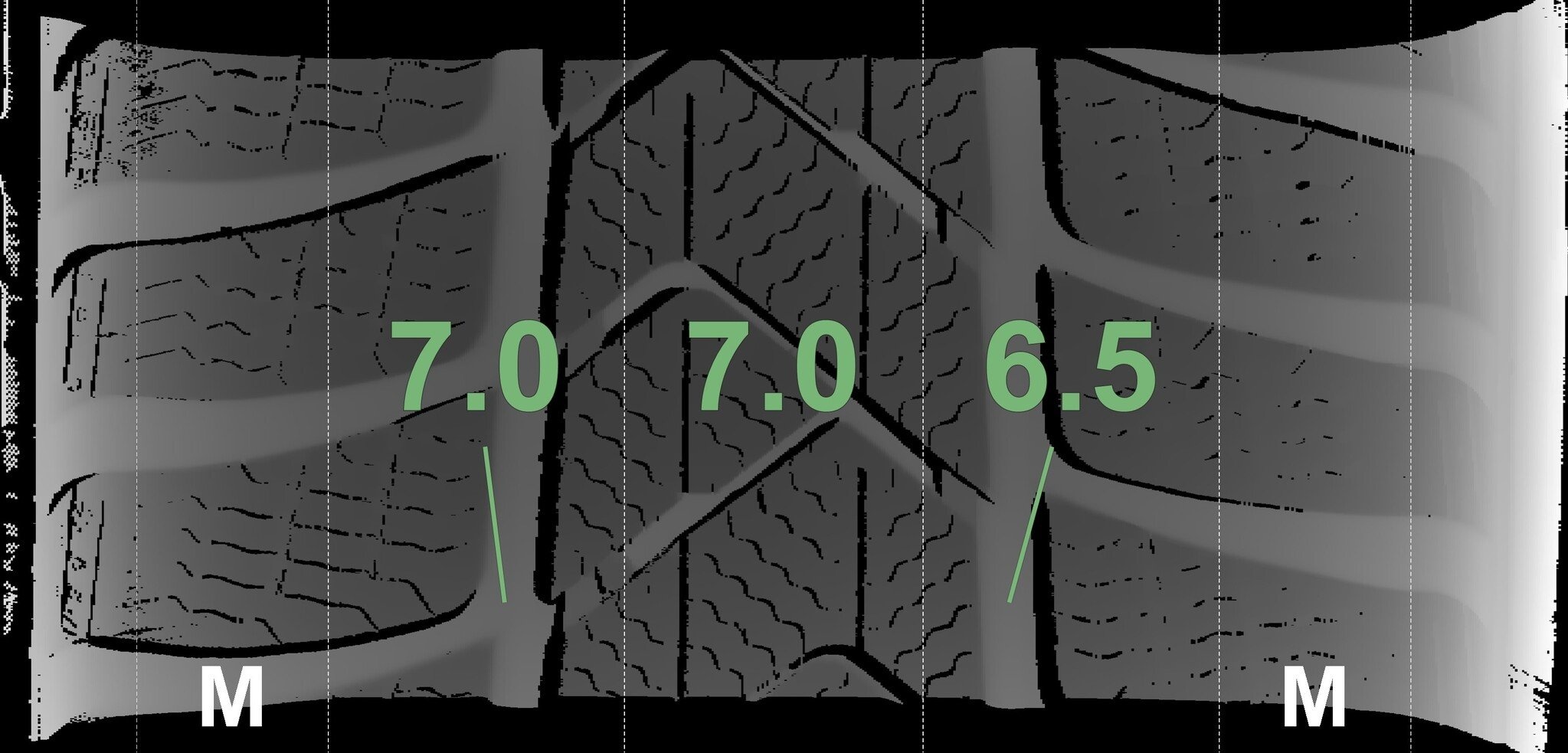 Die gemessenen Profiltiefen und Details zu den Felgen sind oben abgebildet.