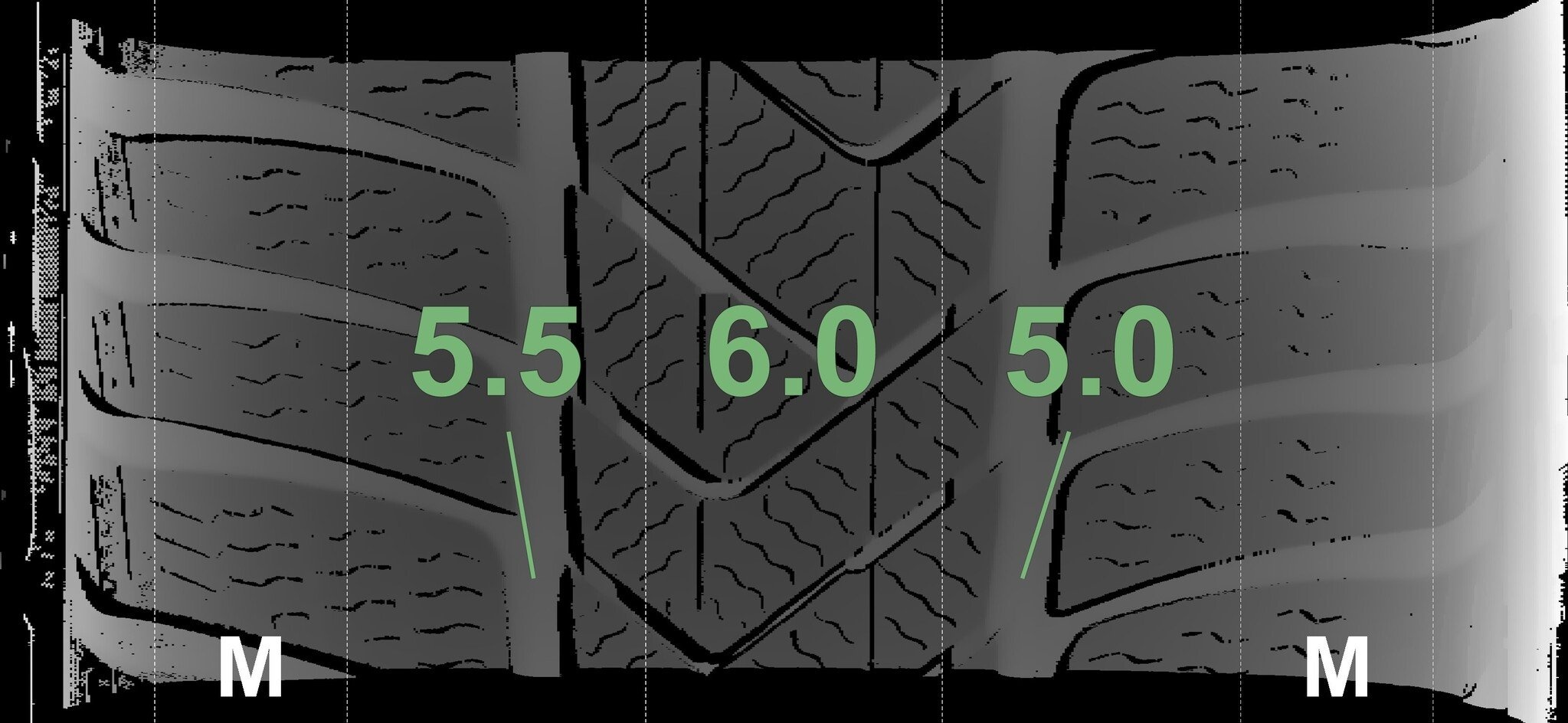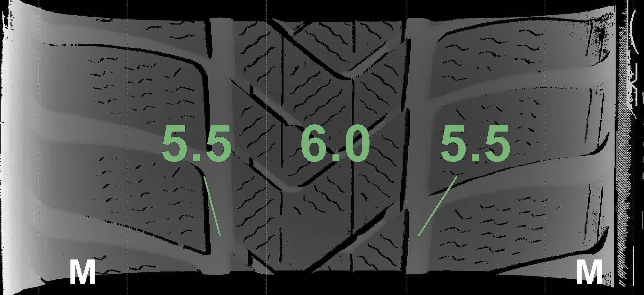 Die gemessenen Profiltiefen und Details zu den Felgen sind oben abgebildet.