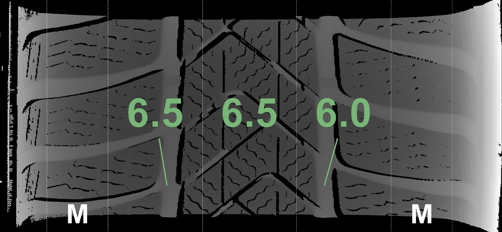 Die gemessenen Profiltiefen und Details zu den Felgen sind oben abgebildet.