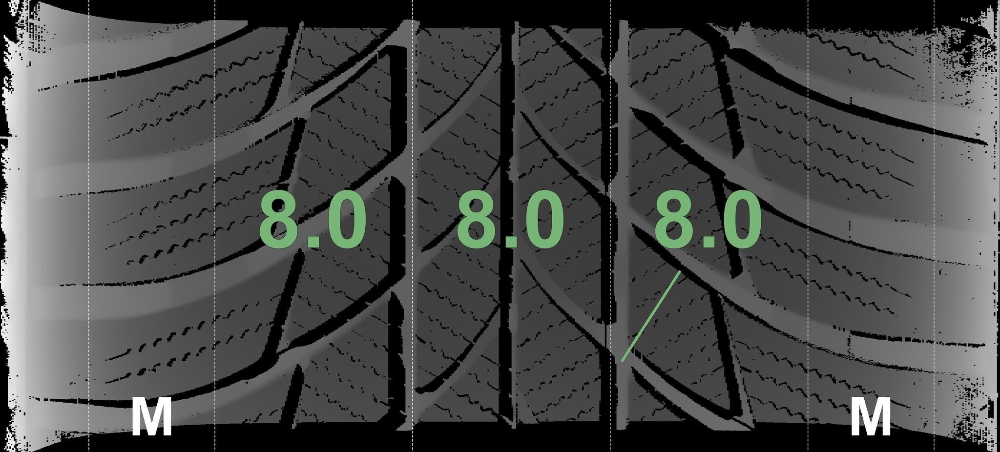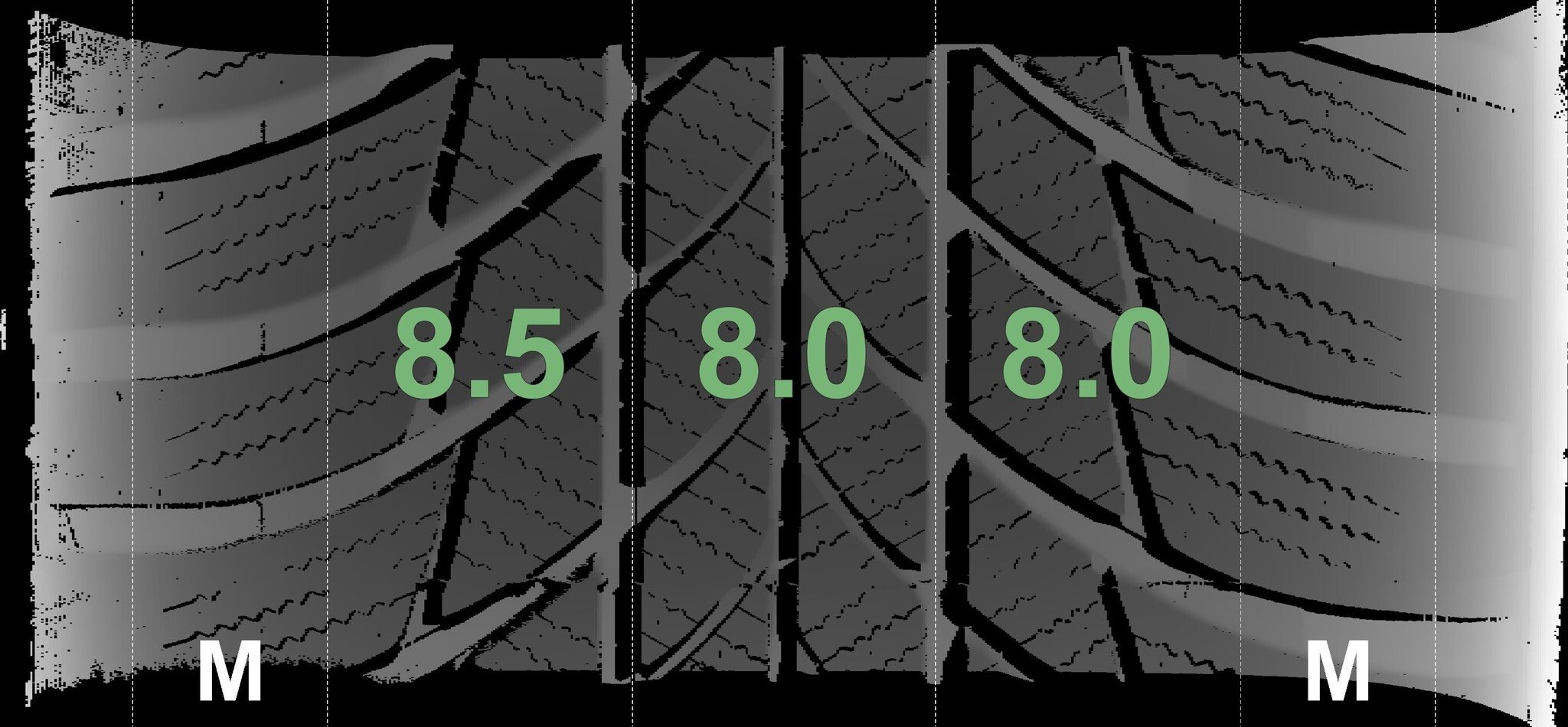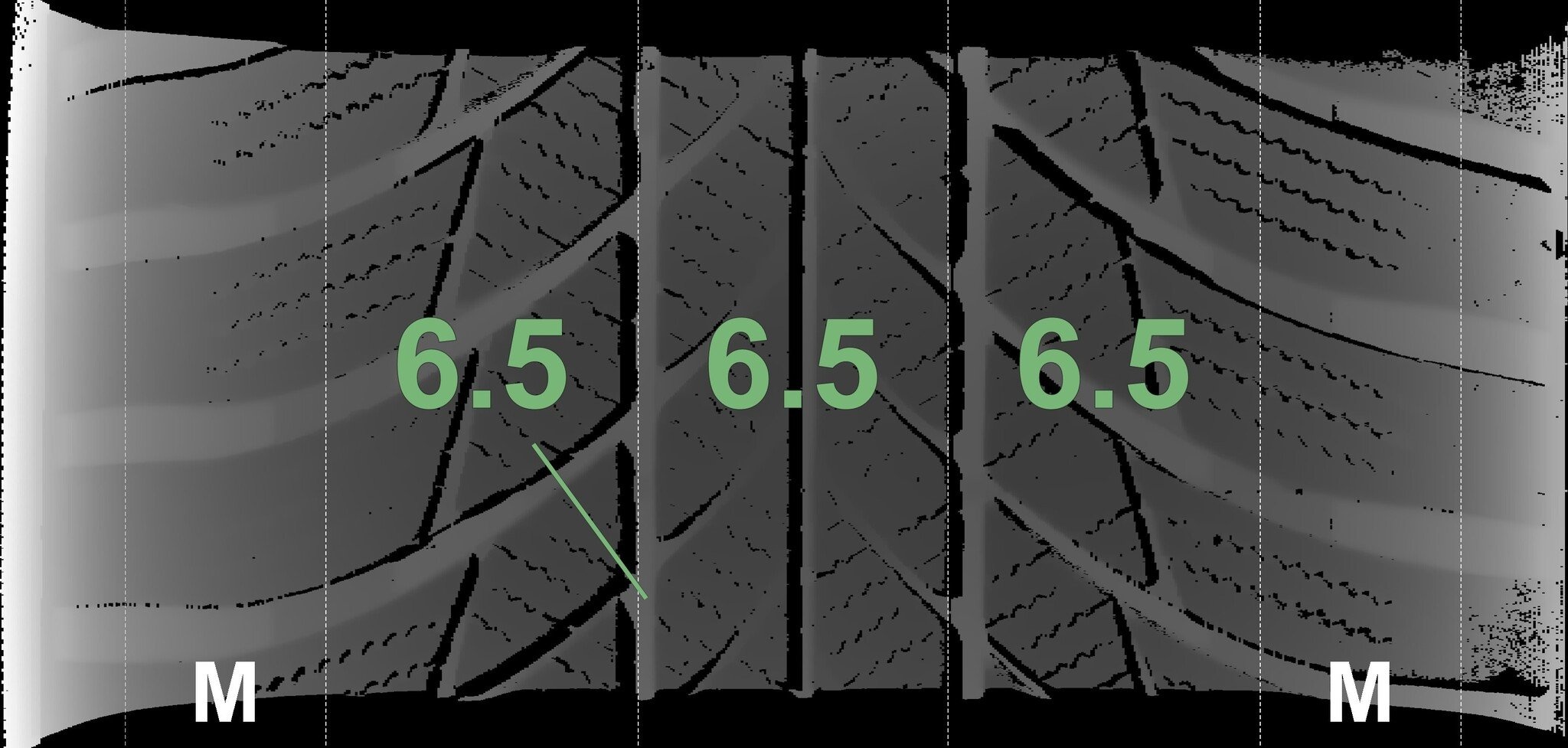 Die gemessenen Profiltiefen und Details zu den Felgen sind oben abgebildet.