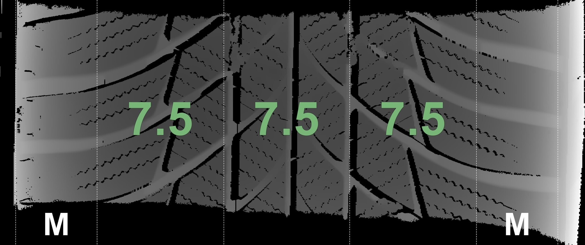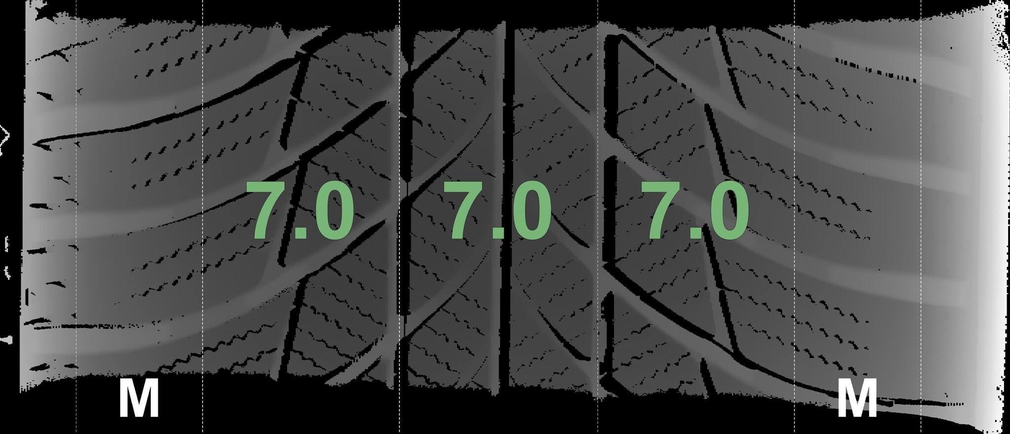 Die gemessenen Profiltiefen und die Details der Felgen sind oben weergegeven.
