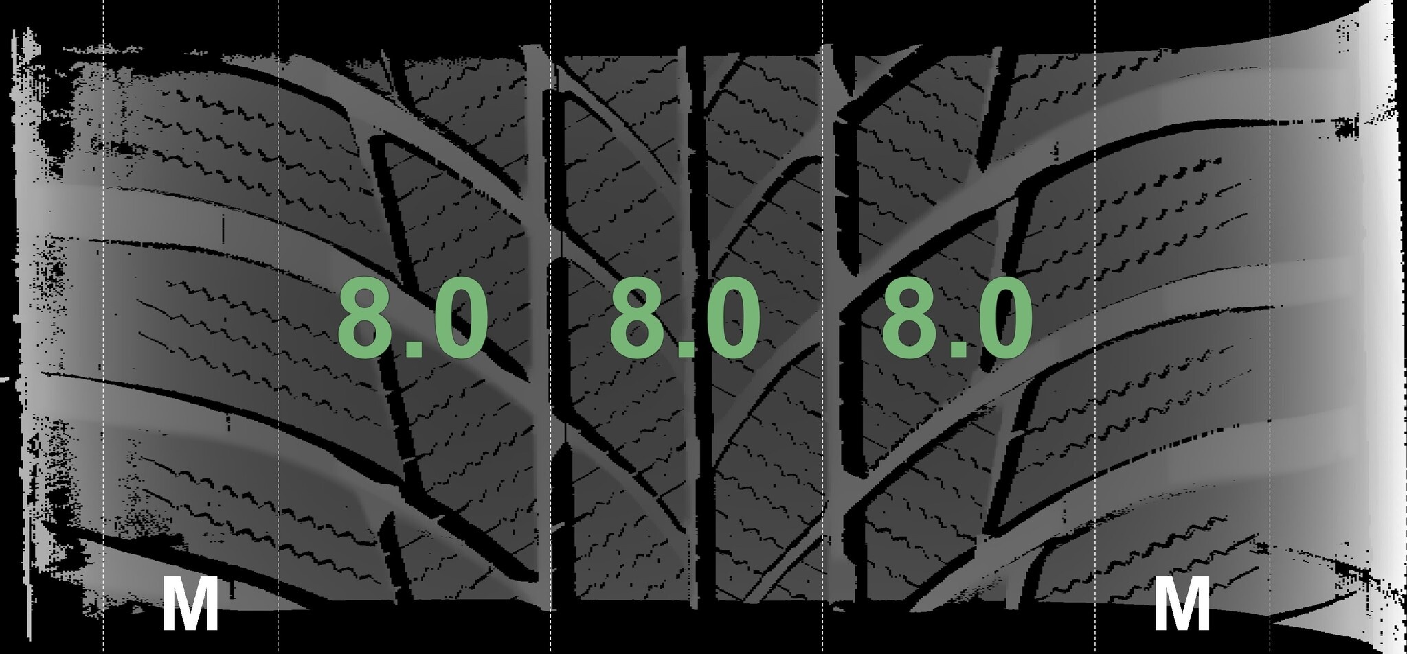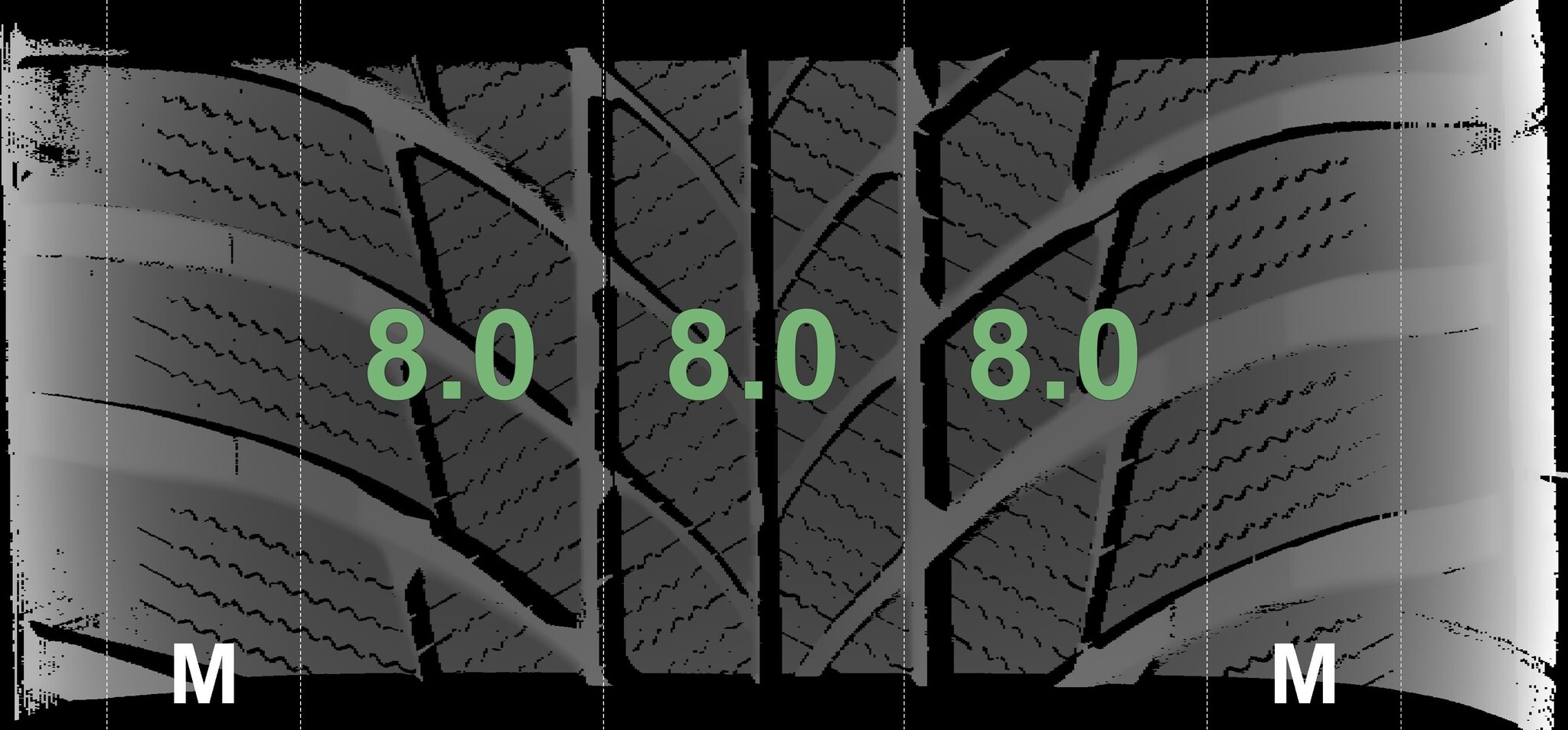 Zustand | Profiltiefe | DOT | Vorderachse Links | Neu | 8,0 mm | 4524 |