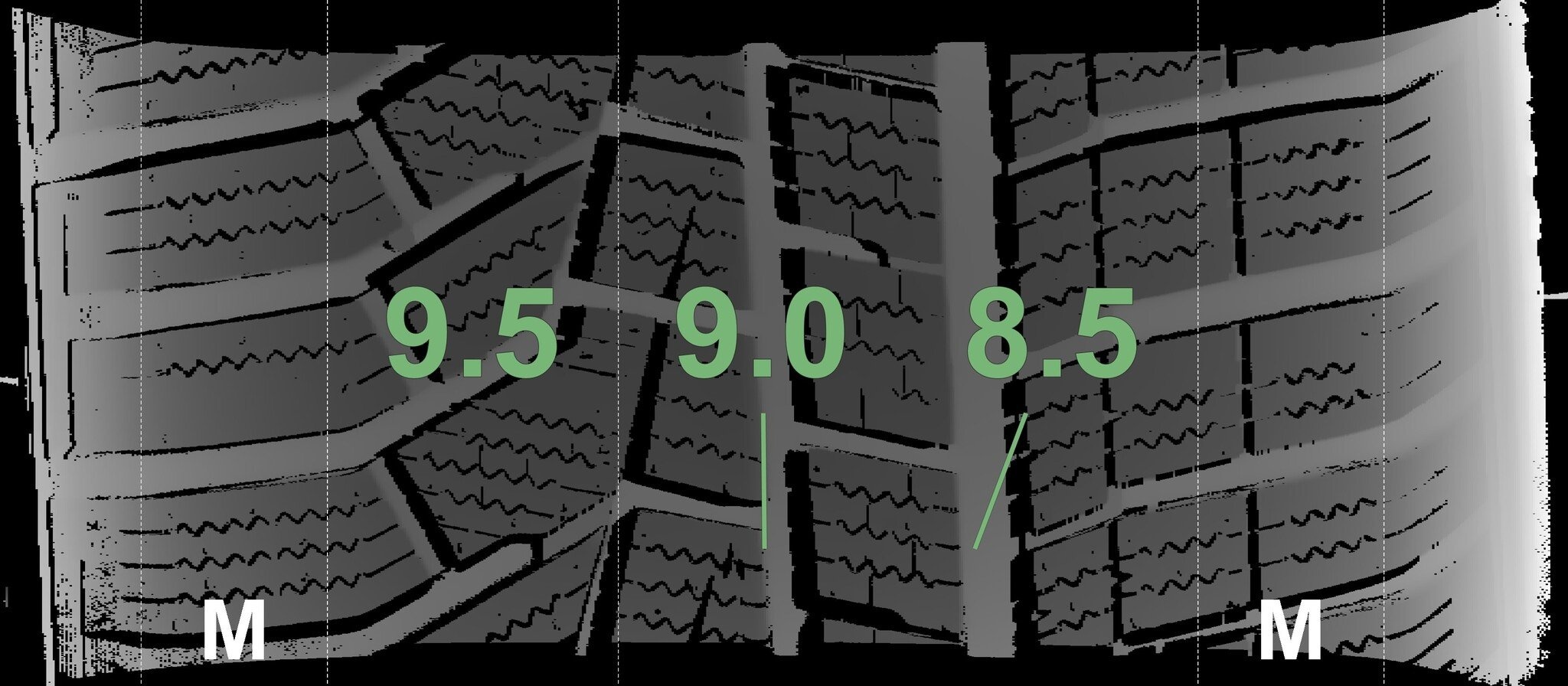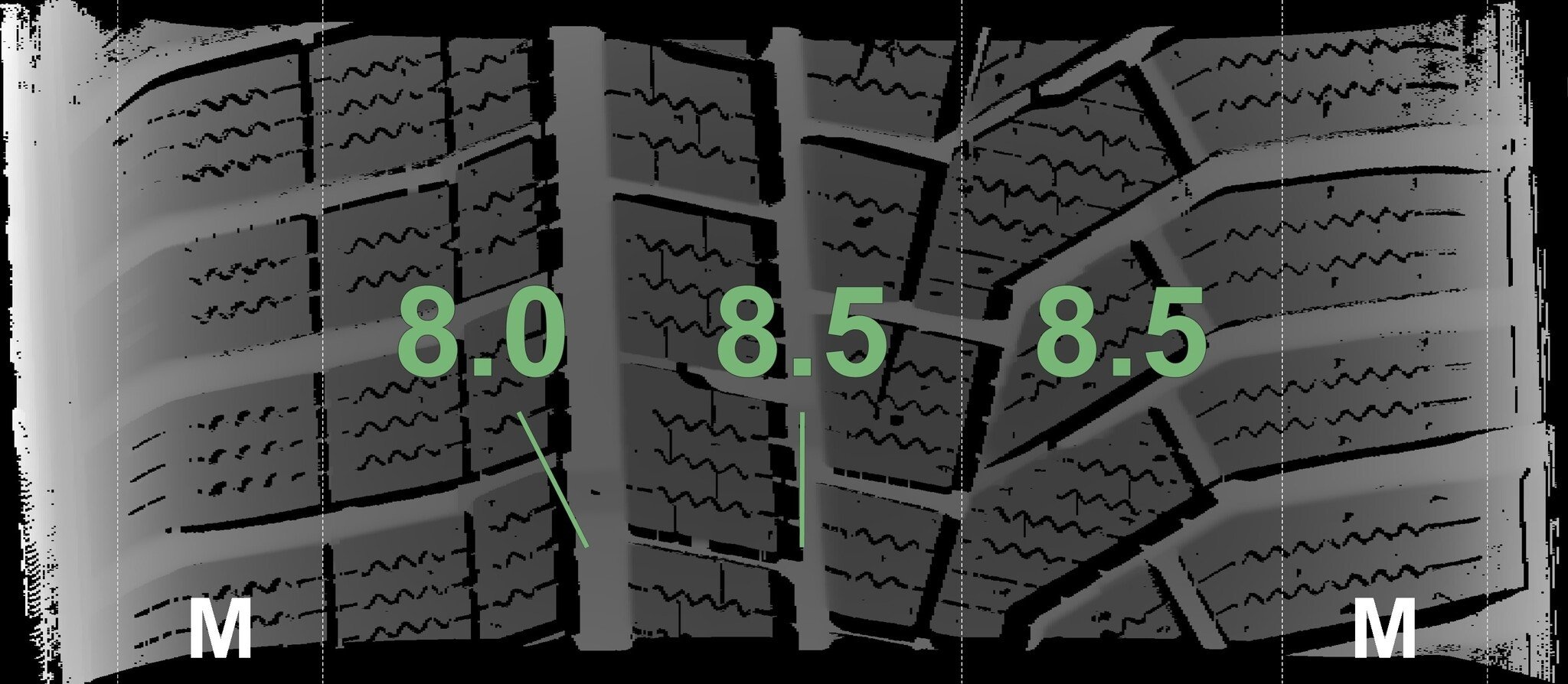 Die gemessenen Profiltiefen und Details zu den Felgen sind oben abgebildet.