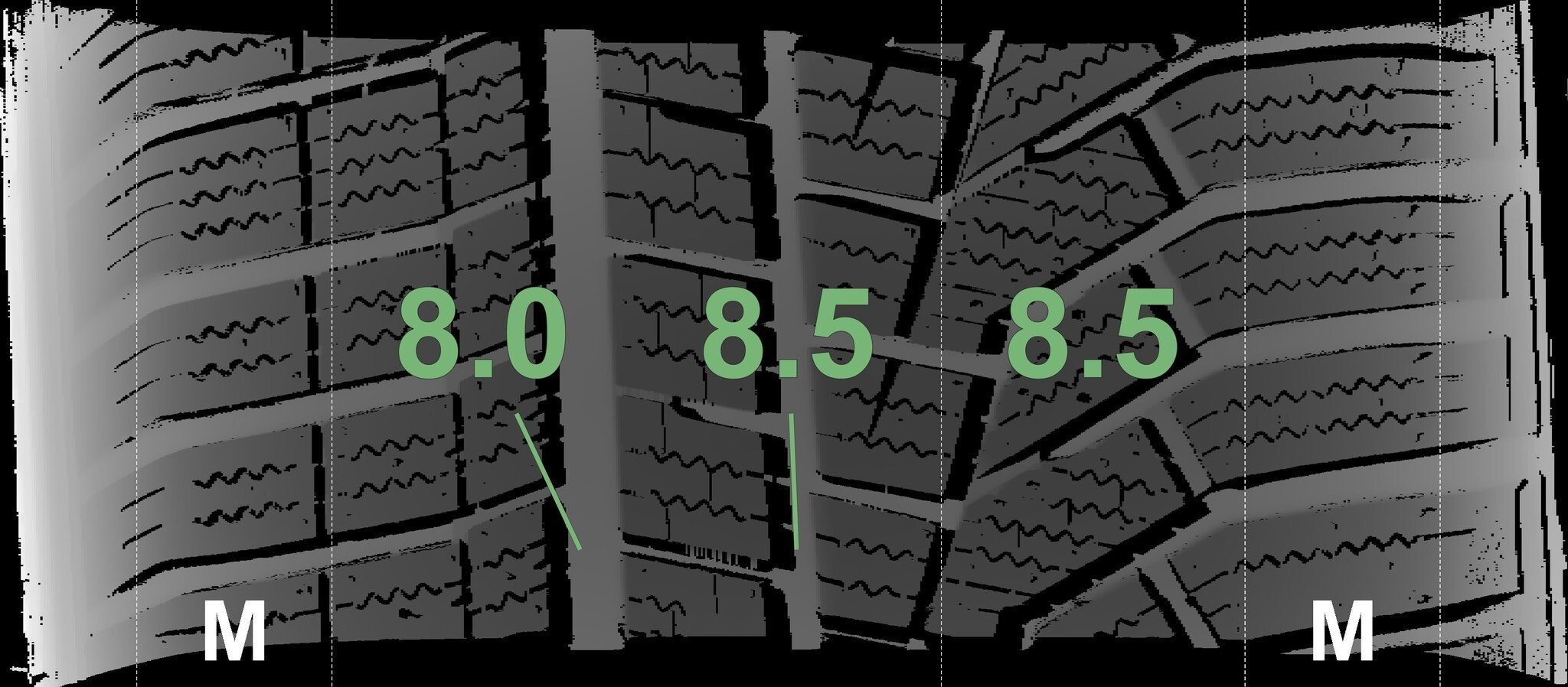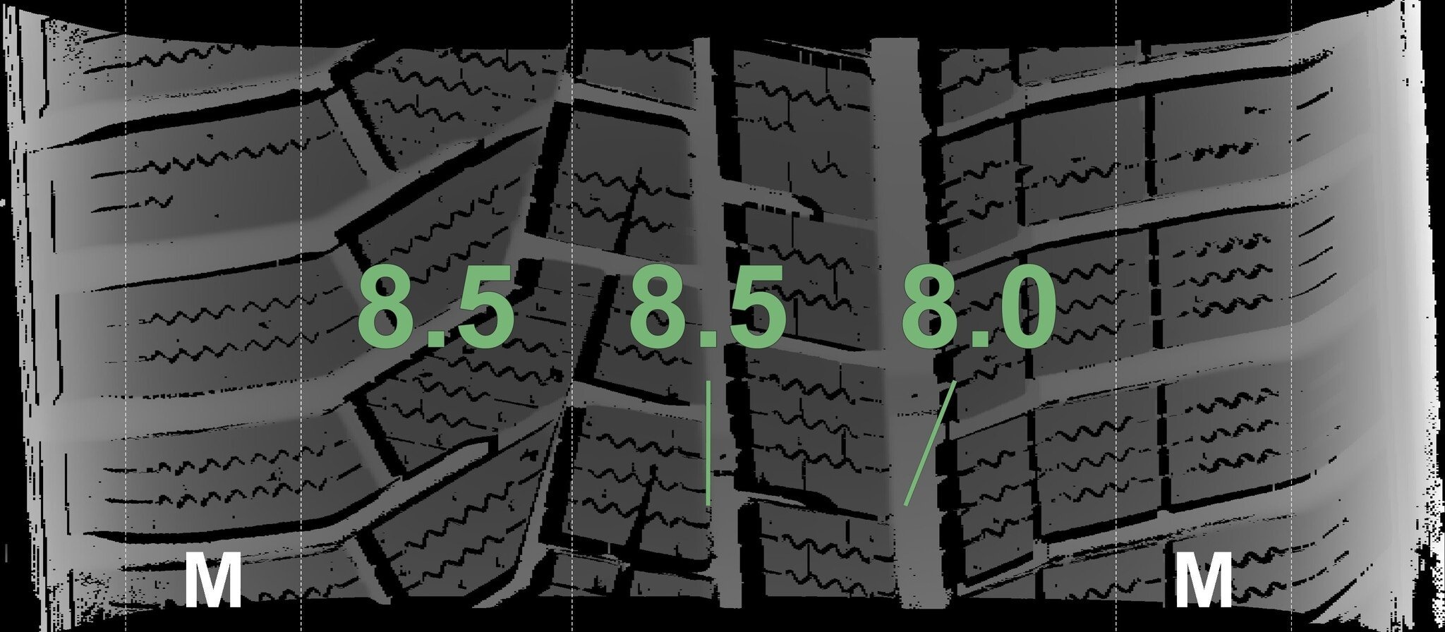 Zustand | Profiltiefe | DOT | Hinterachse Rechts | Neu | 8,5 mm | 4424 |