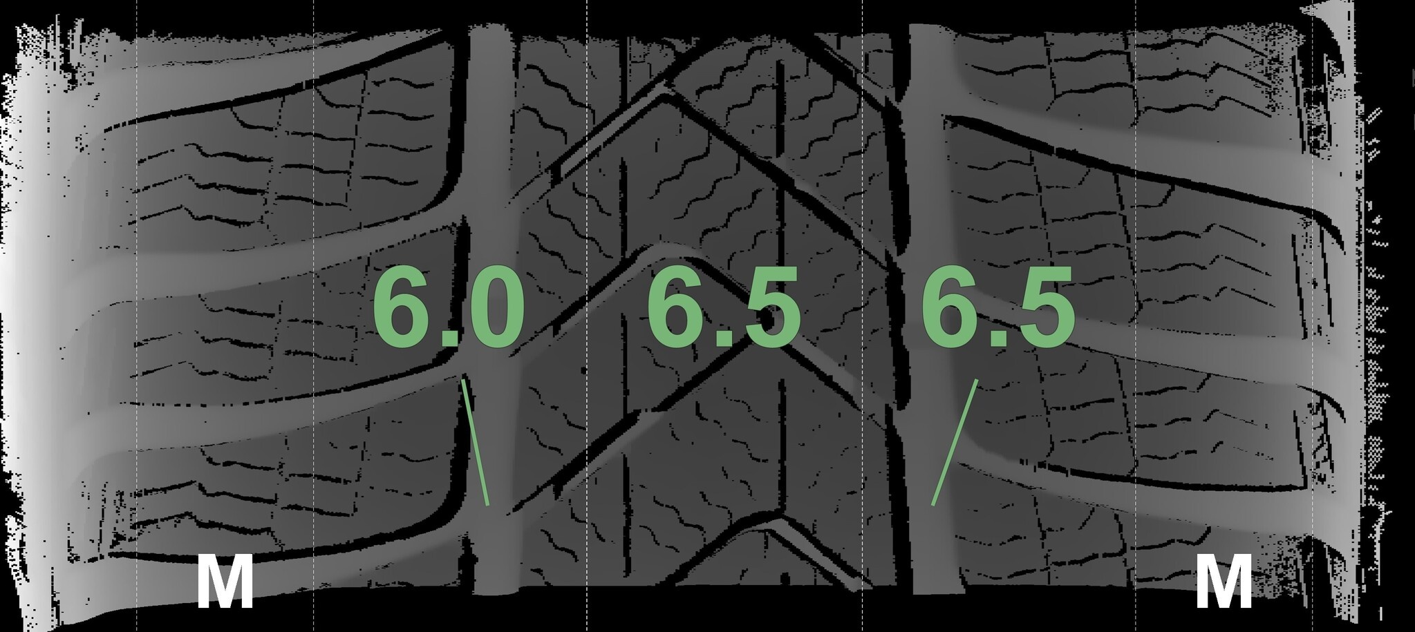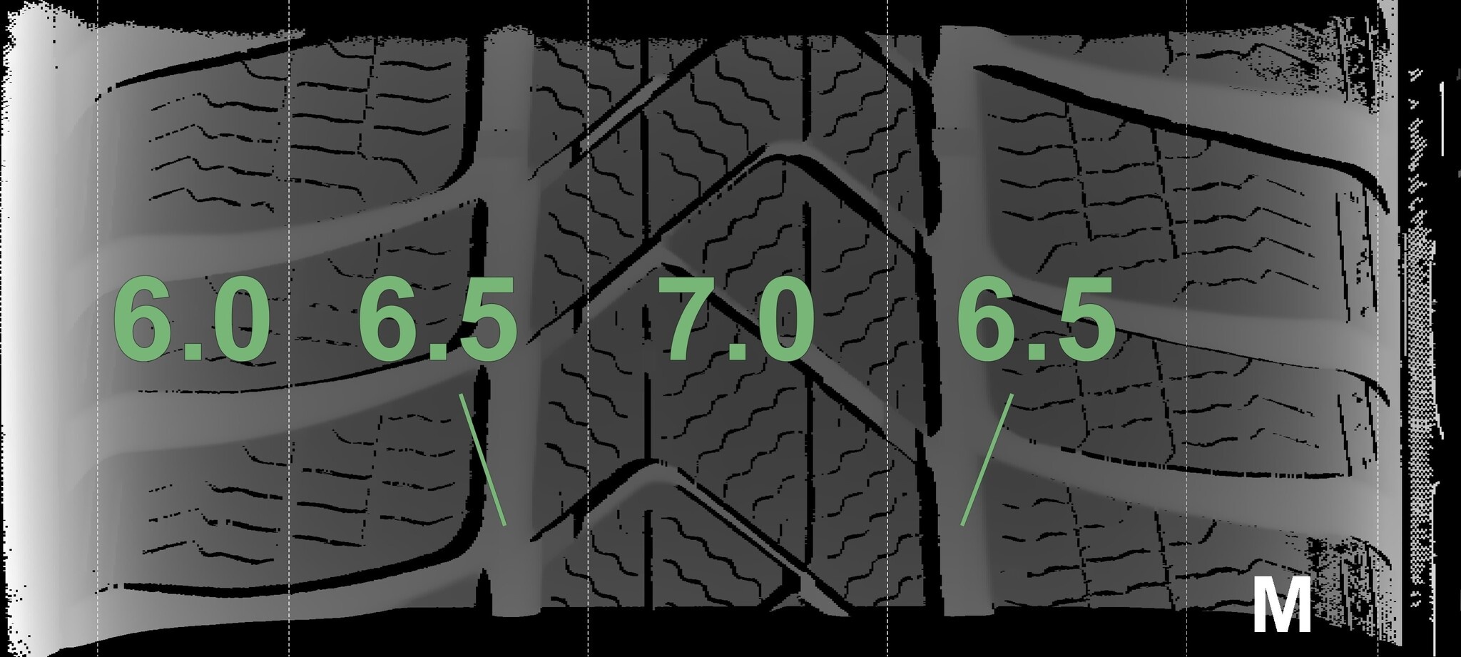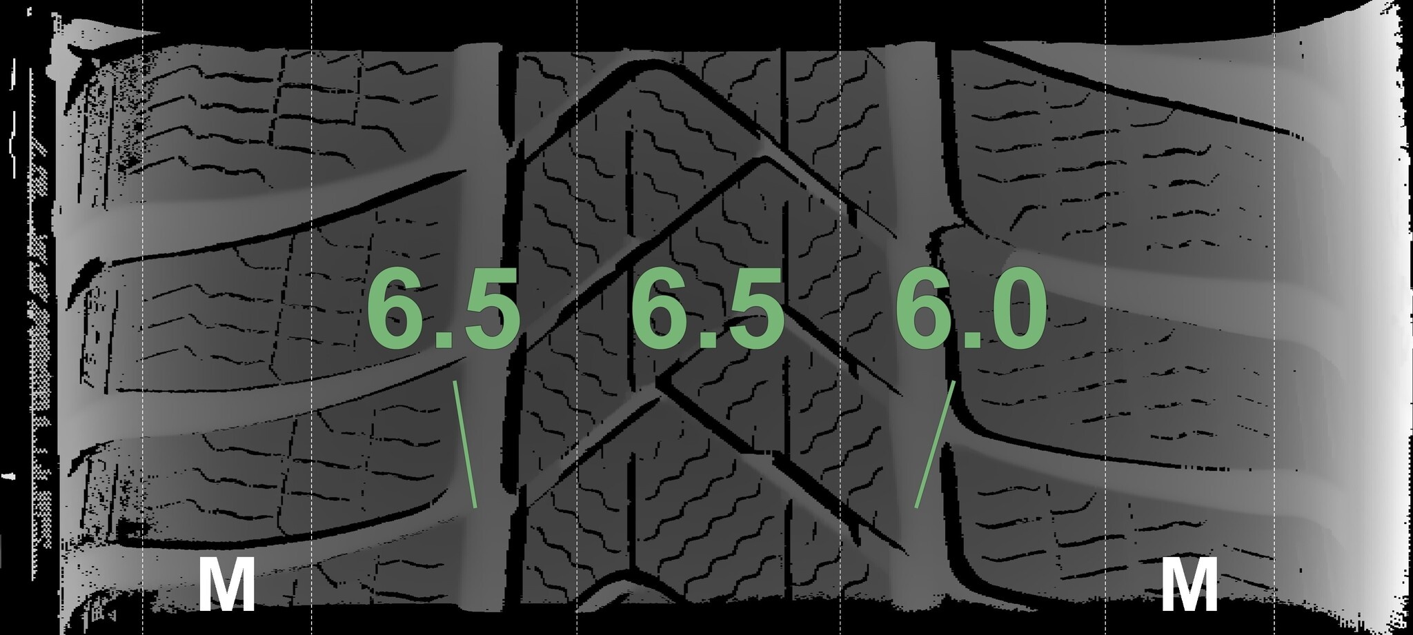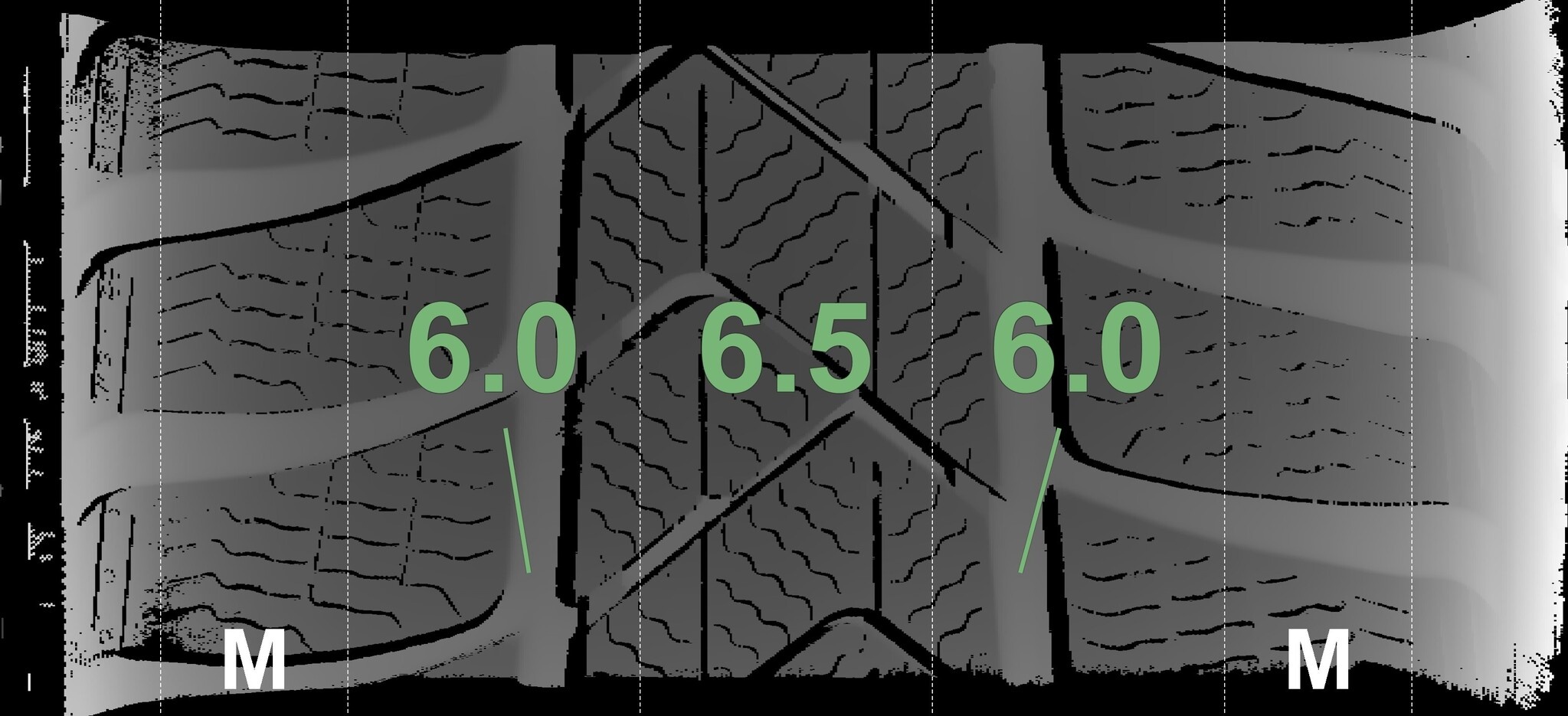 Die gemessenen Profiltiefen und Details zu den Felgen sind oben abgebildet.