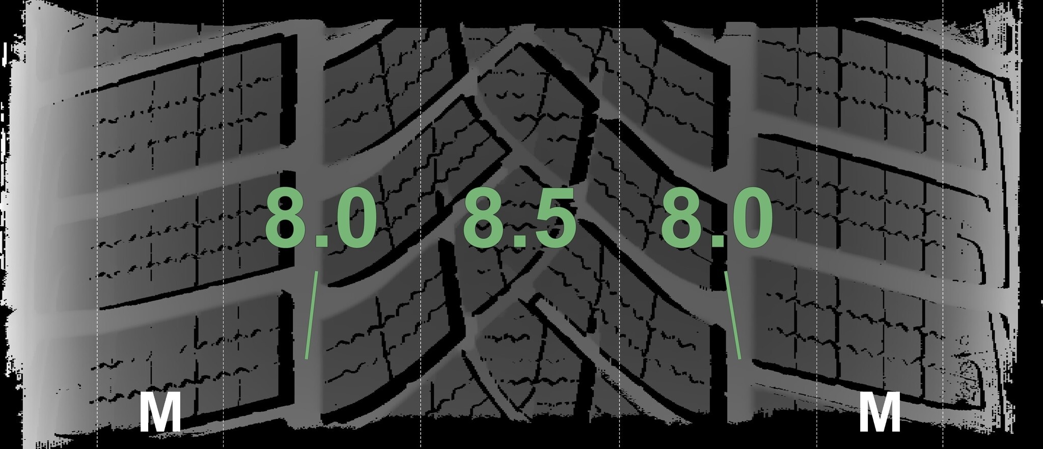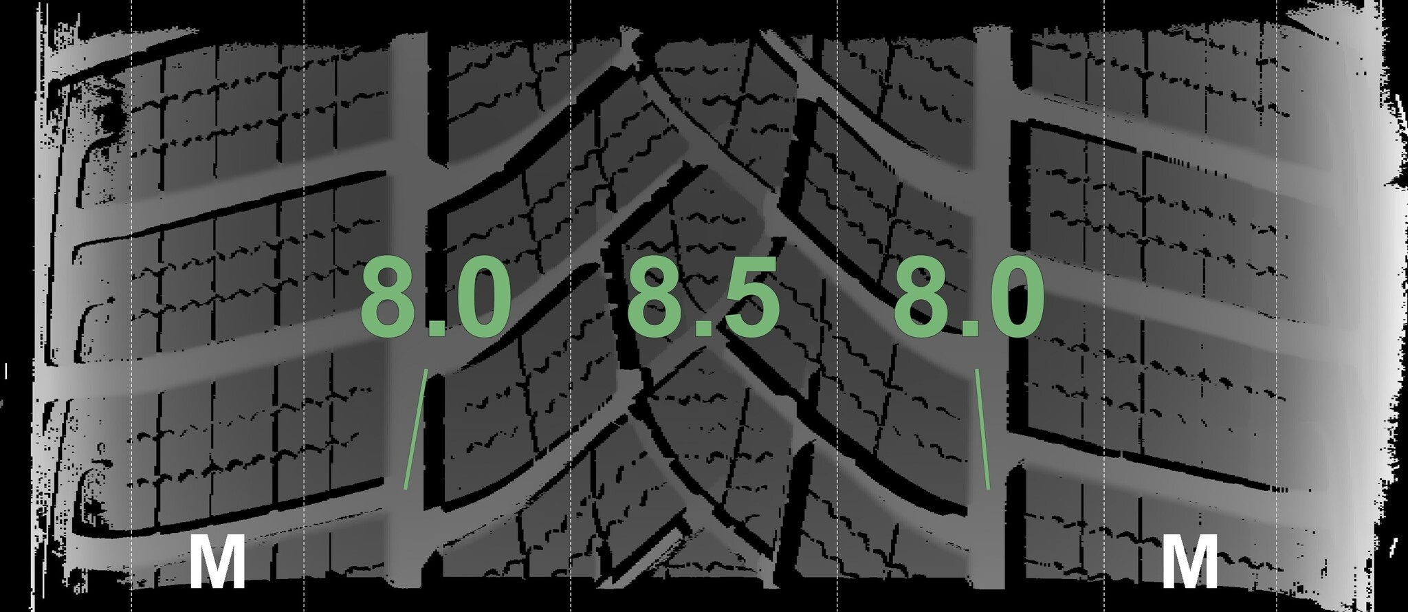 Die gemessenen Profiltiefen und Details zu den Felgen sind oben abgebildet.