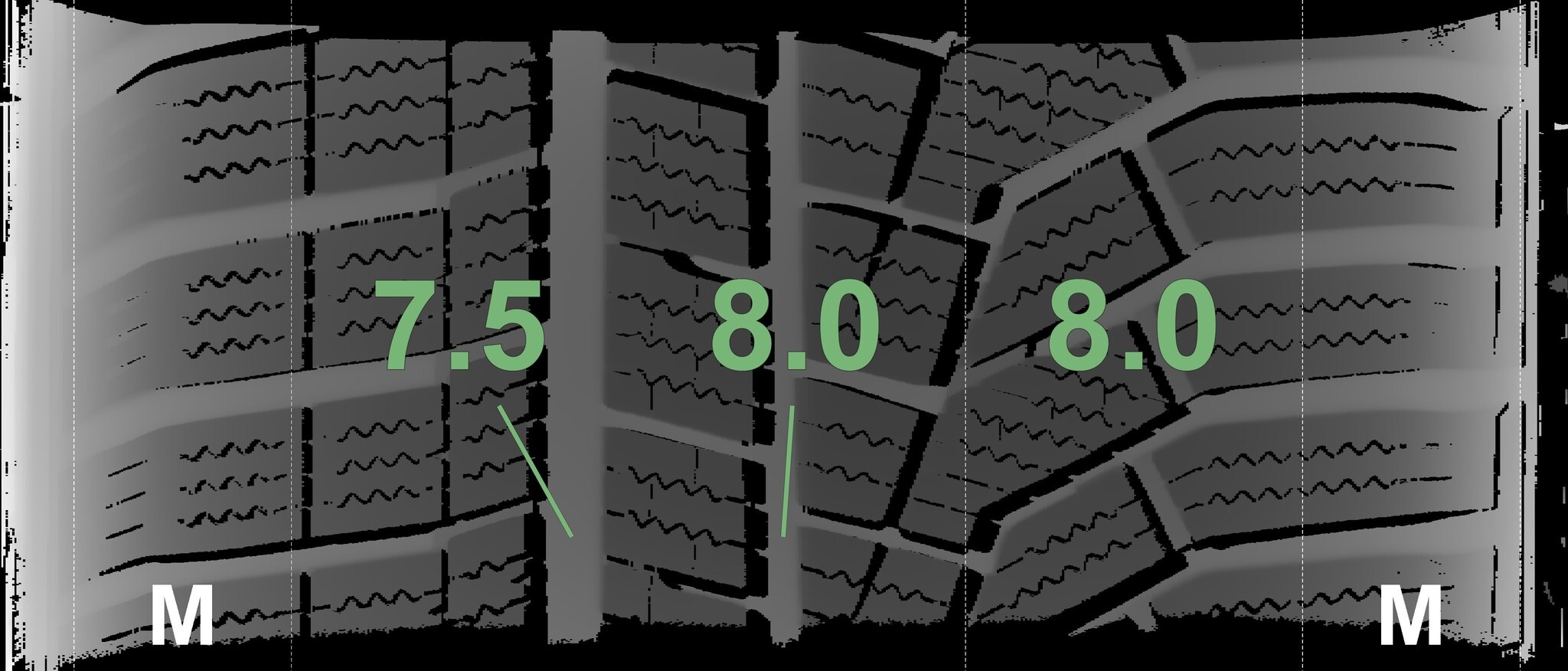 Die gemessenen Profiltiefen und Details zu den Felgen sind oben abgebildet.