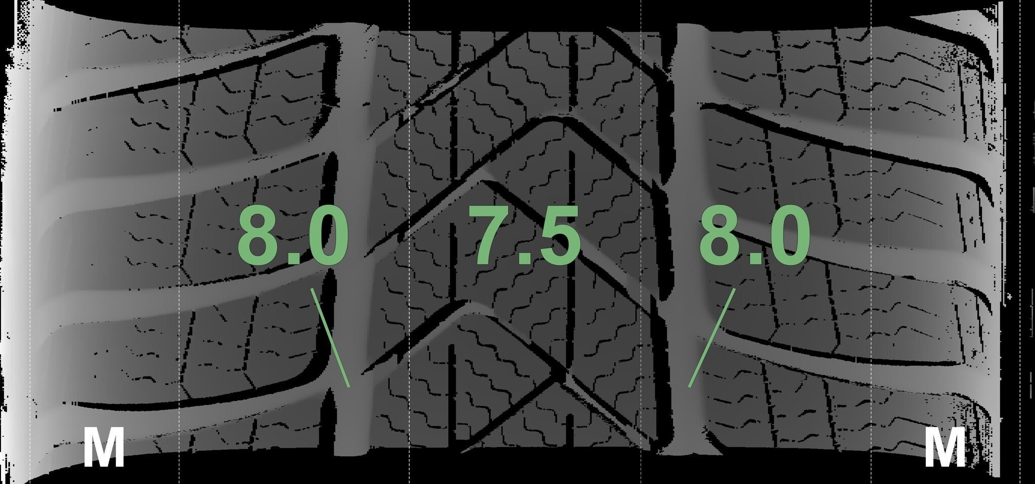 Die gemessenen Profiltiefen und Details zu den Felgen sind oben abgebildet.