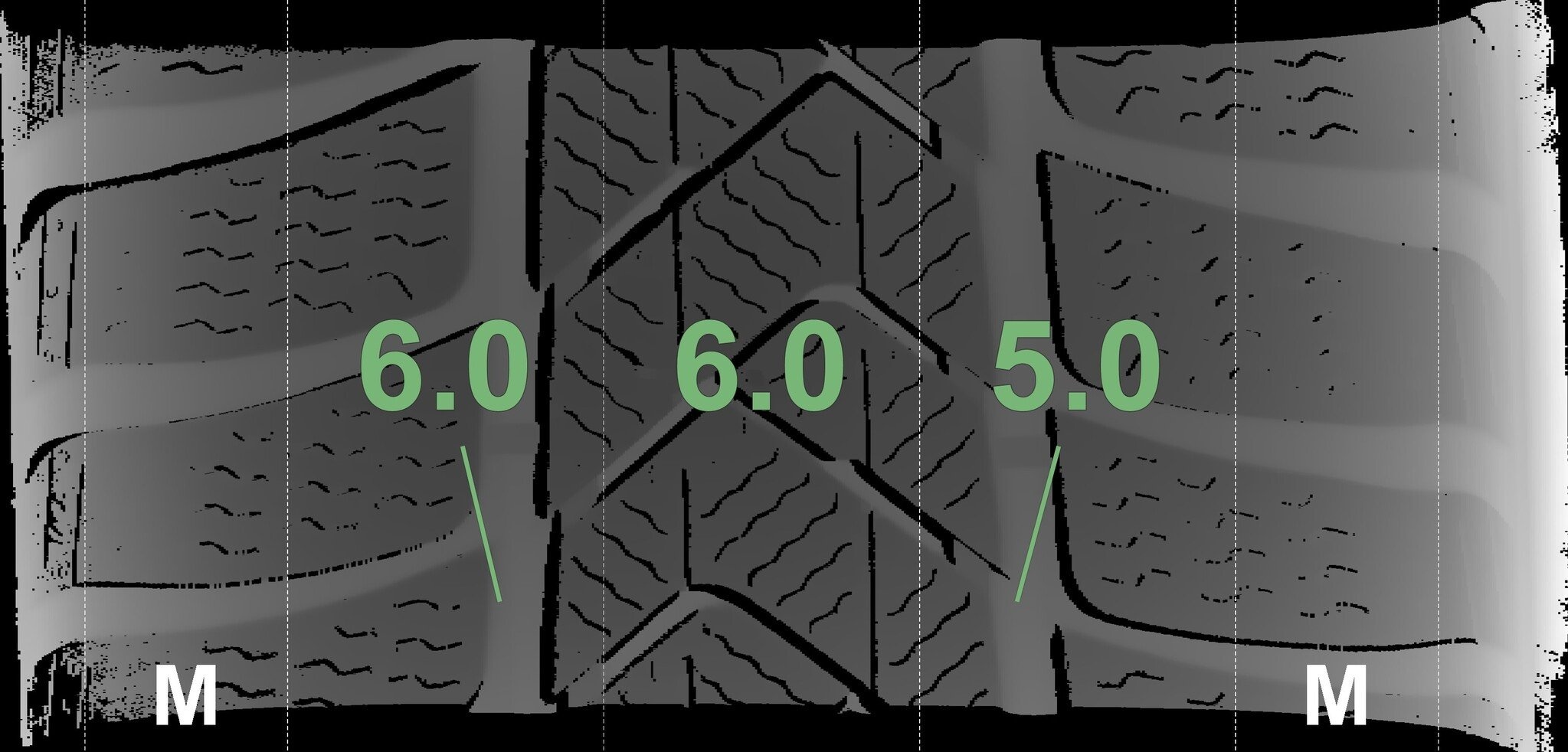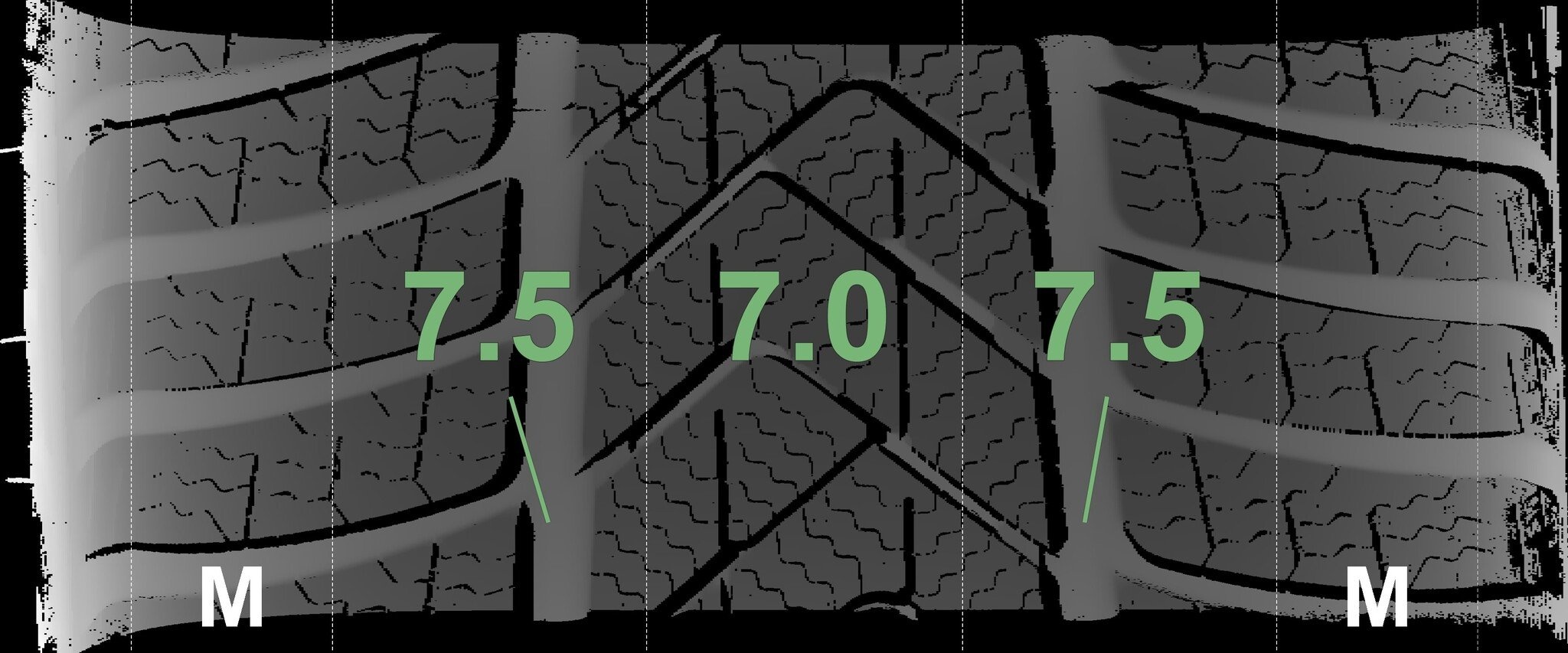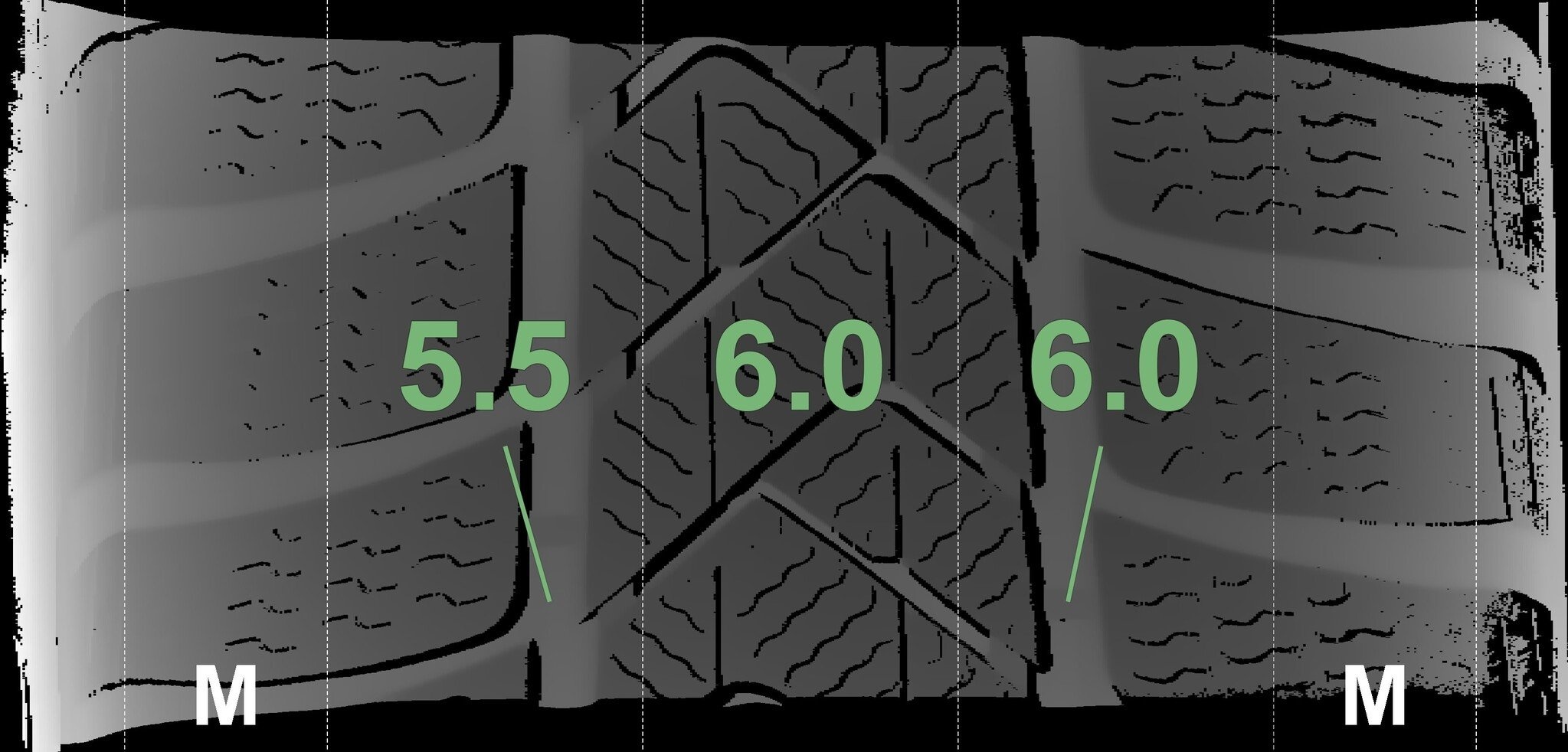 Die gemessenen Profiltiefen und Details zu den Felgen sind oben abgebildet.