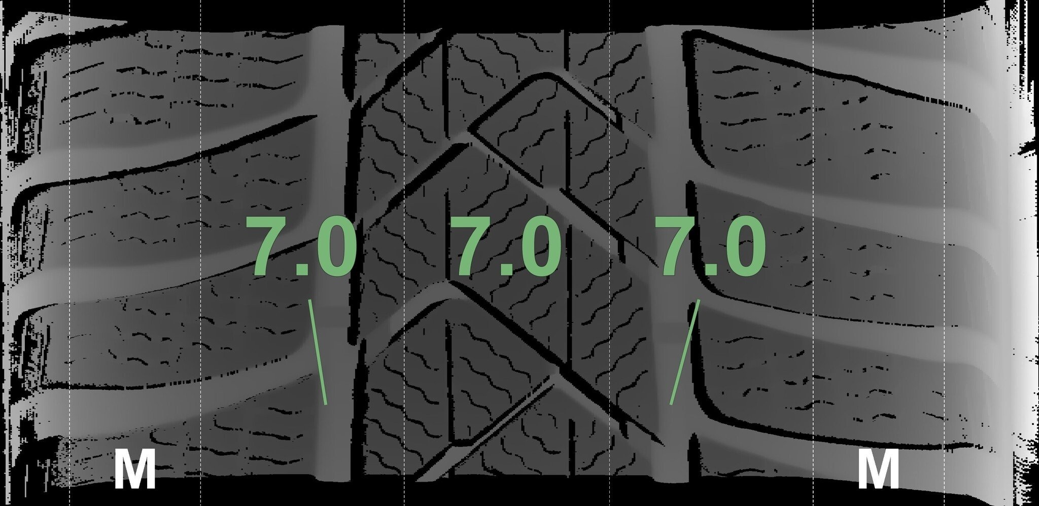 | Zustand | Profiltiefe | DOT | Hinterachse Rechts | Gebraucht | 7,0 mm | 2224 |