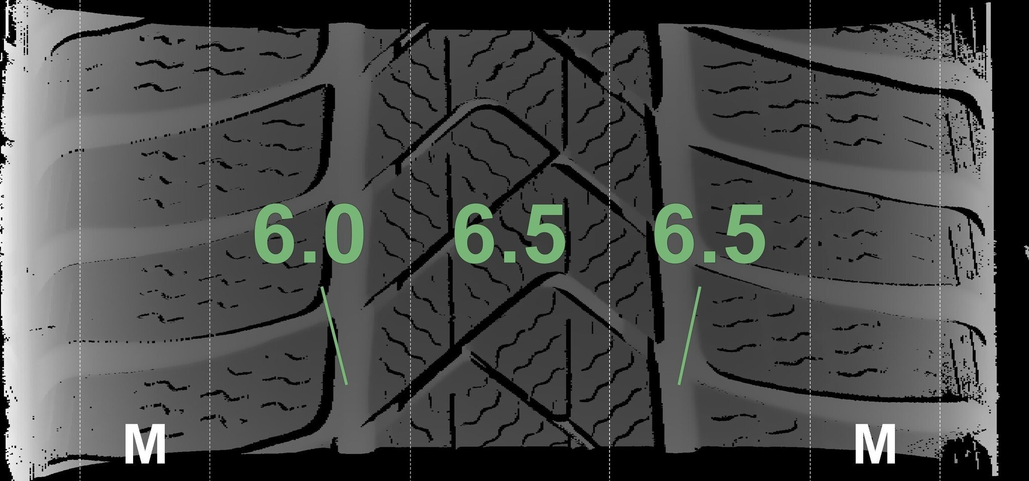 Die gemessenen Profiltiefen und Details zu den Felgen sind oben abgebildet.